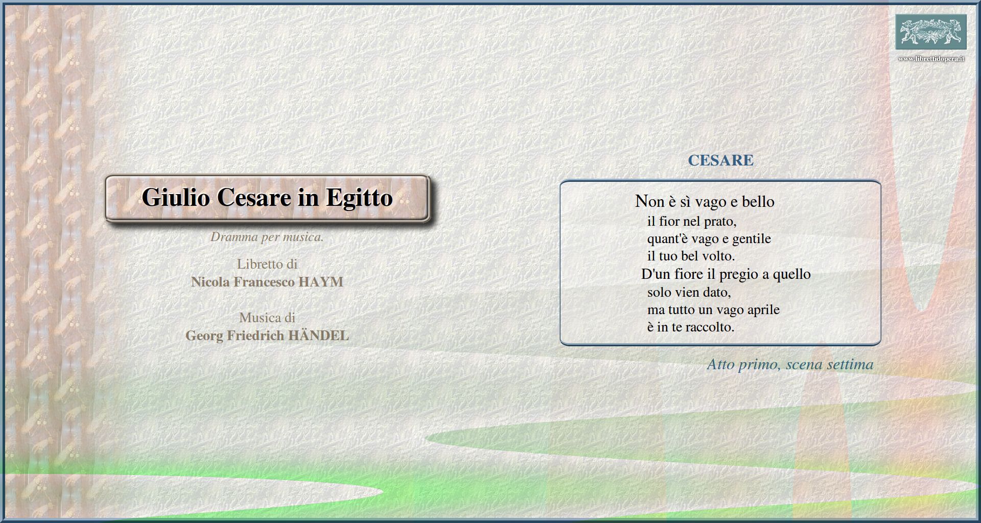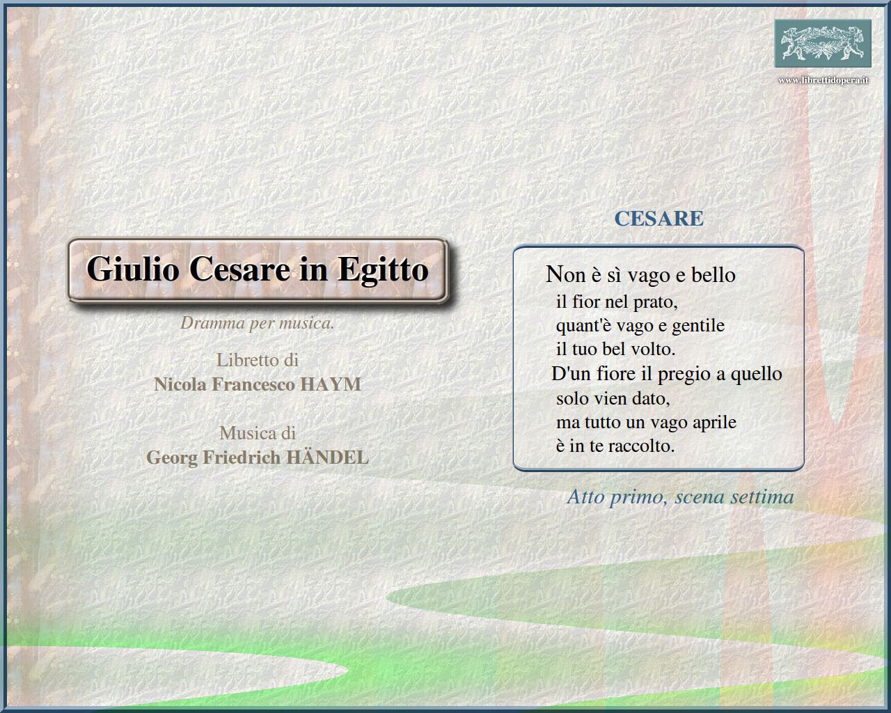 Empio, dirò, tu sei Tutto può donna vezzosa Non è sì vago e bello Va tacito e nascosto V'adoro, pupille Cessa omai di sospirare Piangerò la sorte mia La giustizia ha già sull'arco Da tempeste il legno infranto