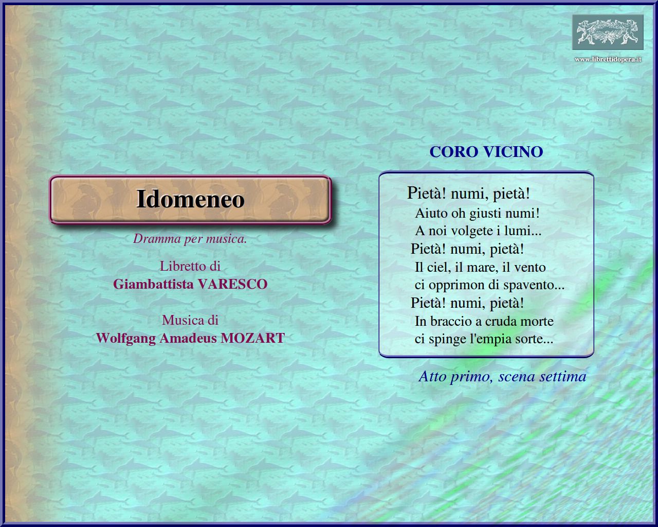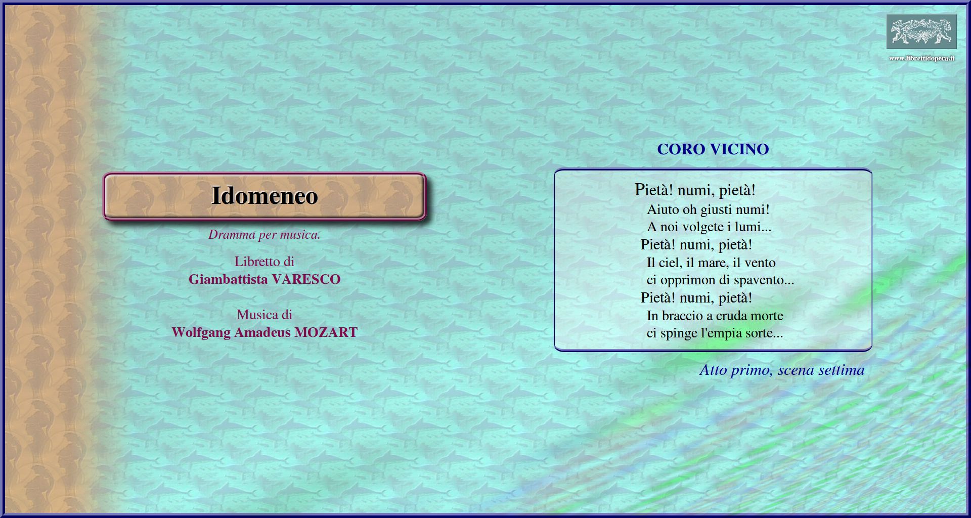 Pietà! numi, pietà! Vedrommi intorno l'ombra dolente Fuor del mar ho un mare in seno Oh voto tremendo!