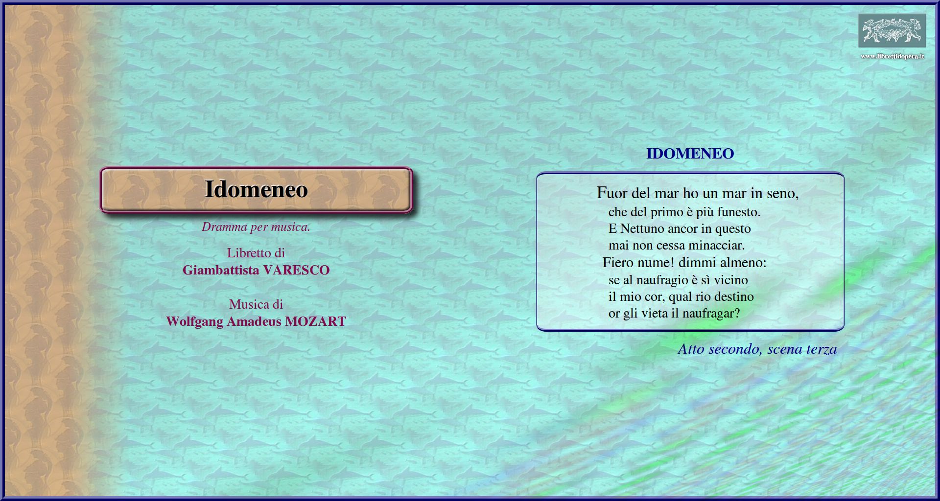 Pietà! numi, pietà! Vedrommi intorno l'ombra dolente Fuor del mar ho un mare in seno Oh voto tremendo!