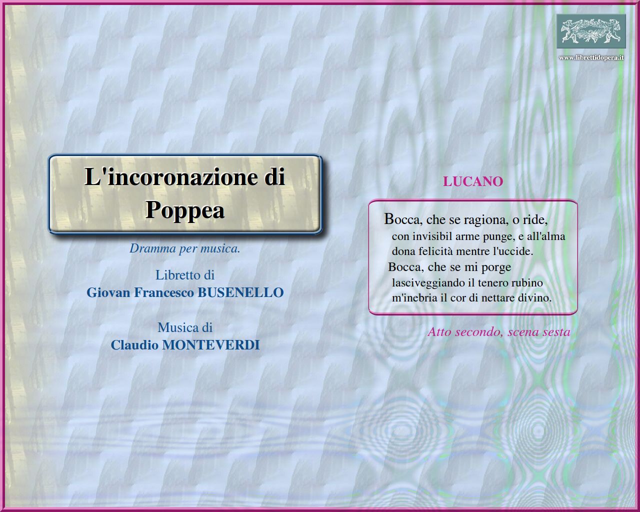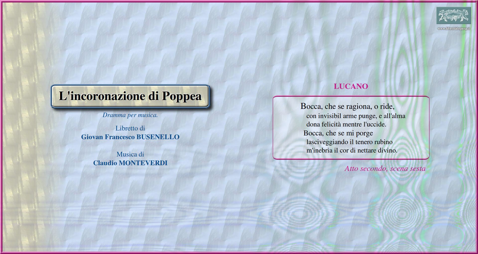 L'arte del navigar verso l'Olimpo Disprezzata regina Bocca, che se ragiona, o ride Pur ti miro, pur ti godo