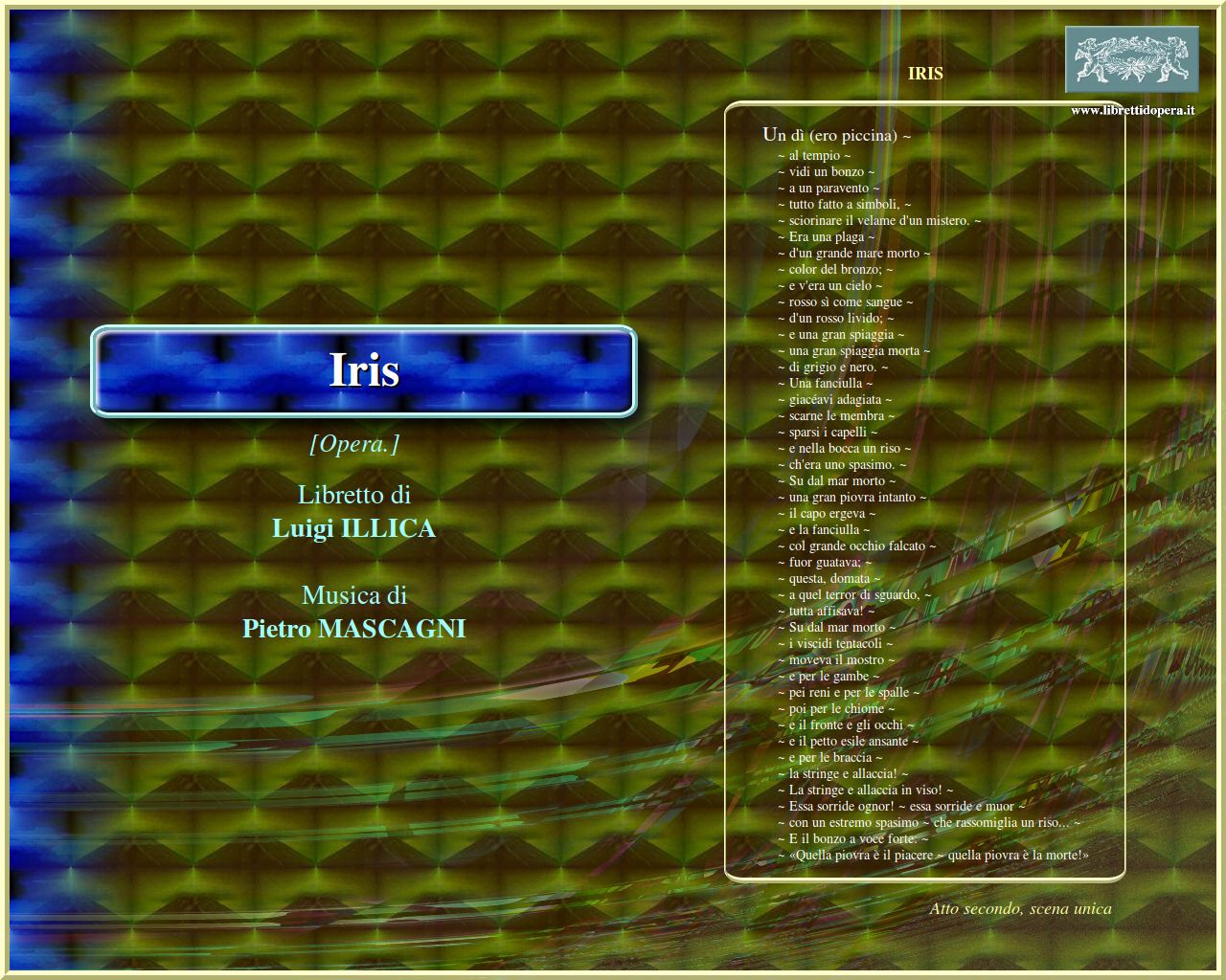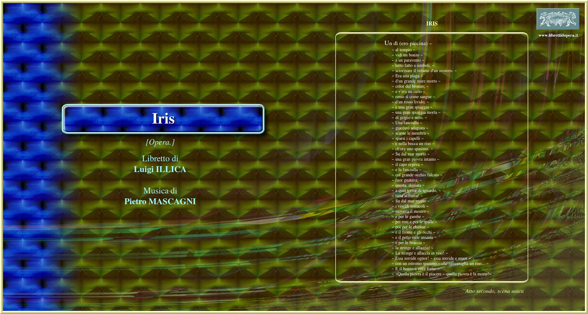 Son io! ~ son io, la vita! ~ son la beltà infinita Un dì ero piccina Ancora il triste sogno pauroso!...