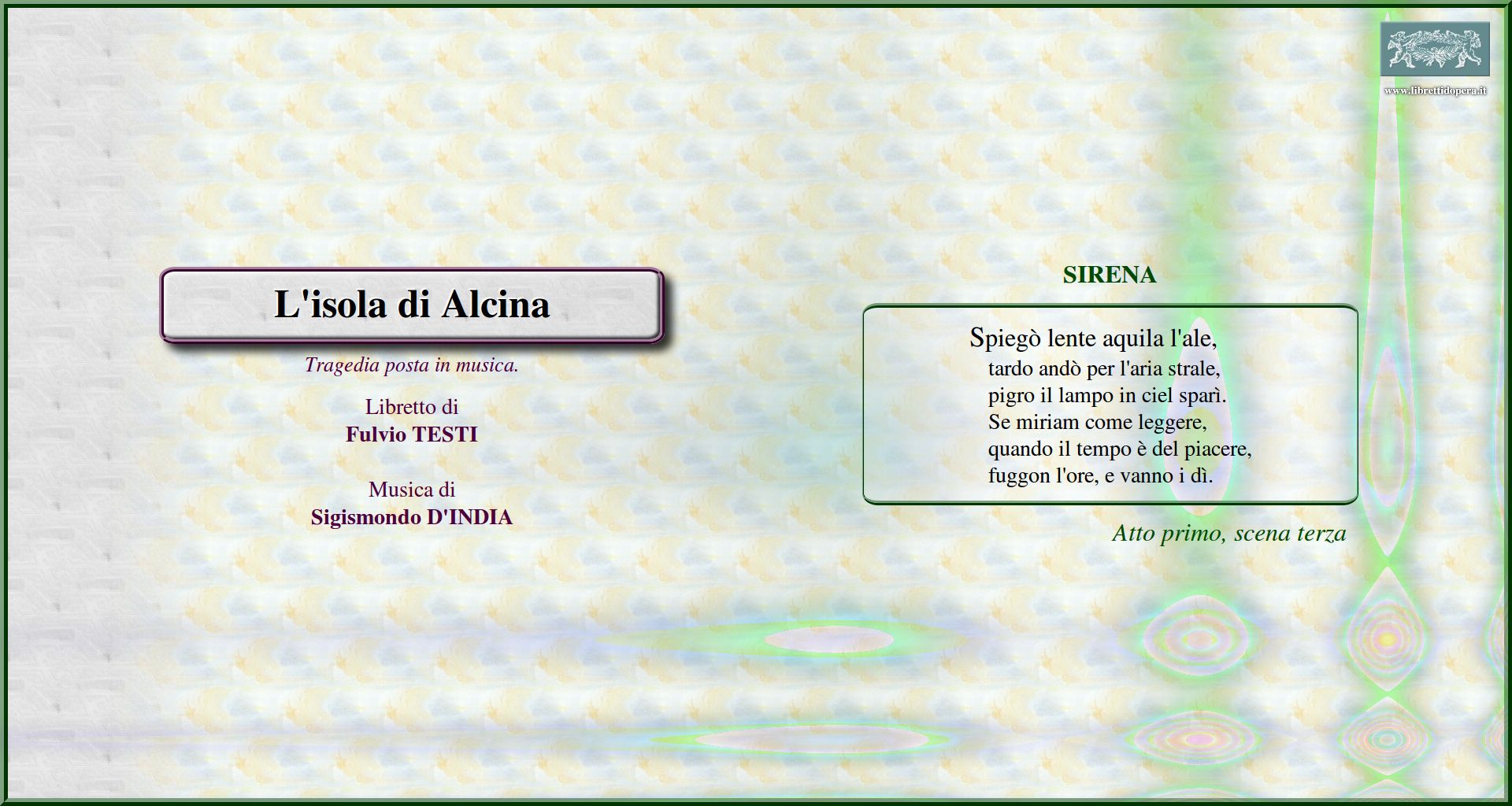 Spiegò lente aquila l'ale Santi numi del ciel, s'egli è pur vero Quando da l'onde