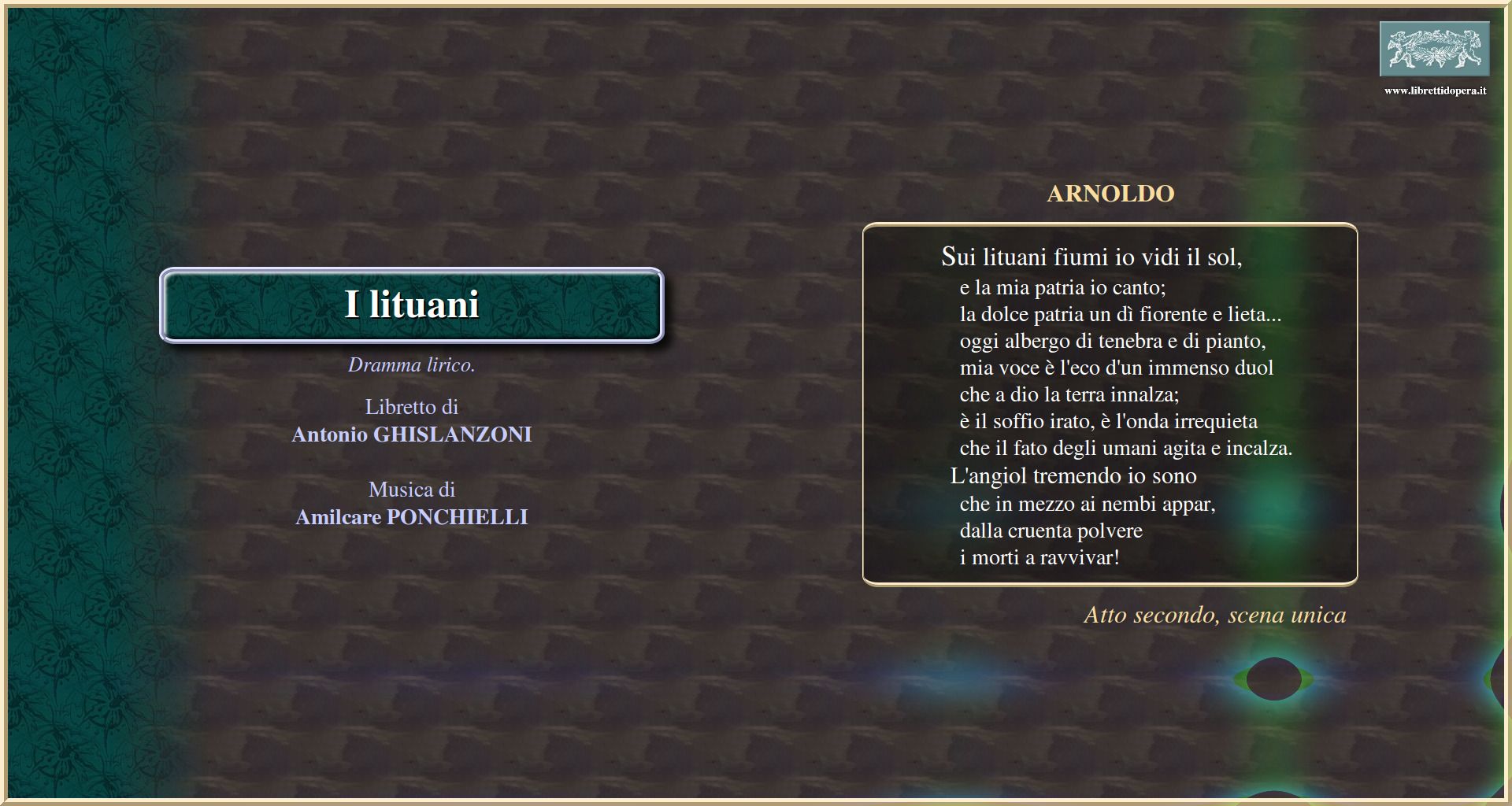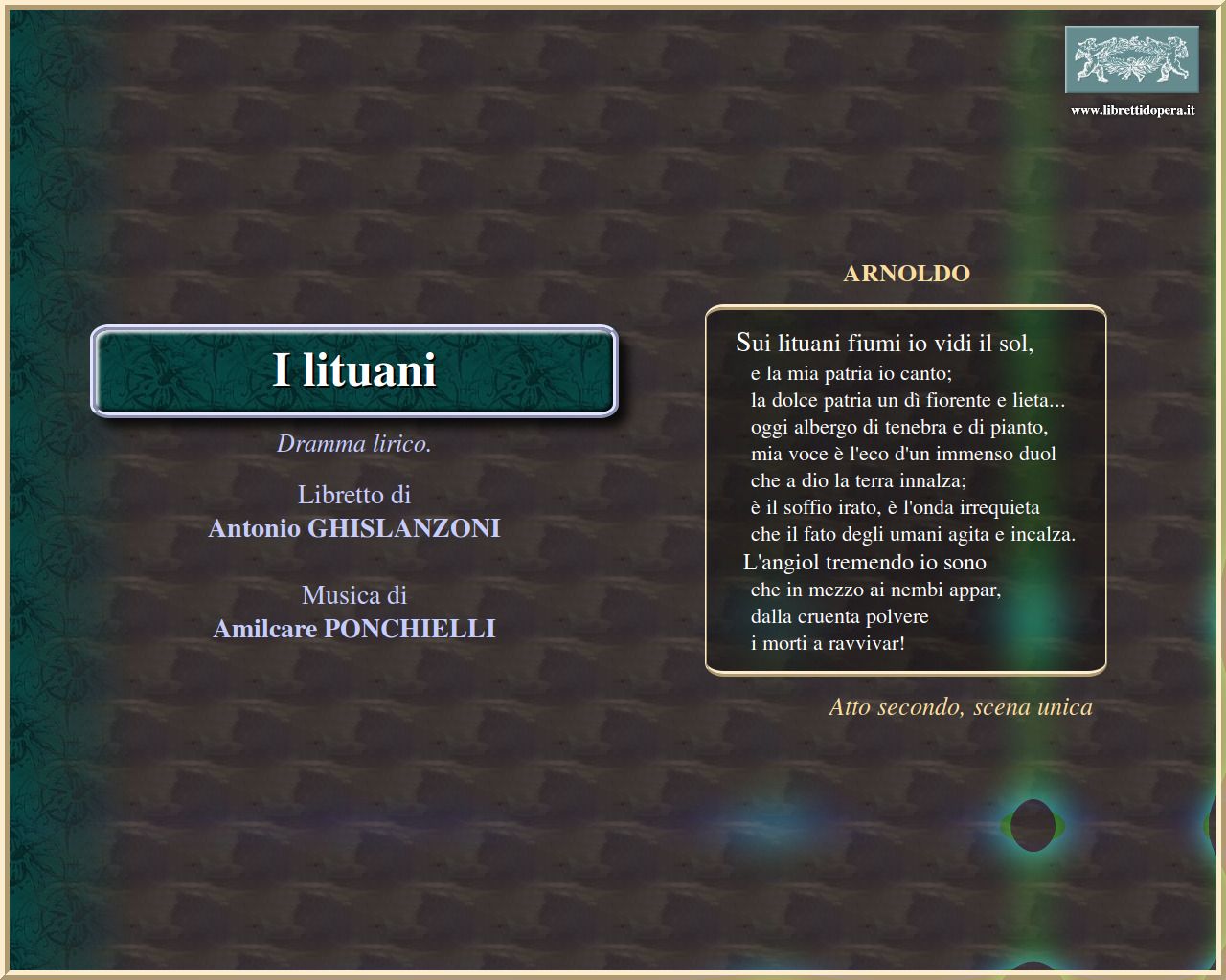 Walter... da me tu parti O rimembranze, gioie, speranze Sui lituani fiumi io vidi il sol E da tre mesi io soffro, e da tre mesi attendo