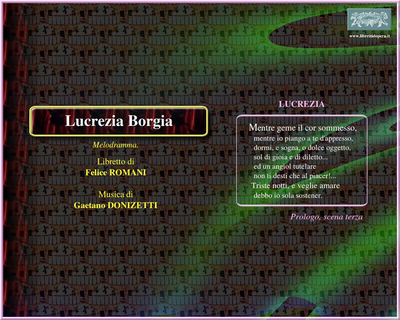 Mentre geme il cor sommesso Vieni: la mia vendetta Il segreto per esser felici M'odi... ah! M'odi... Io non t'imploro Era desso il figlio mio