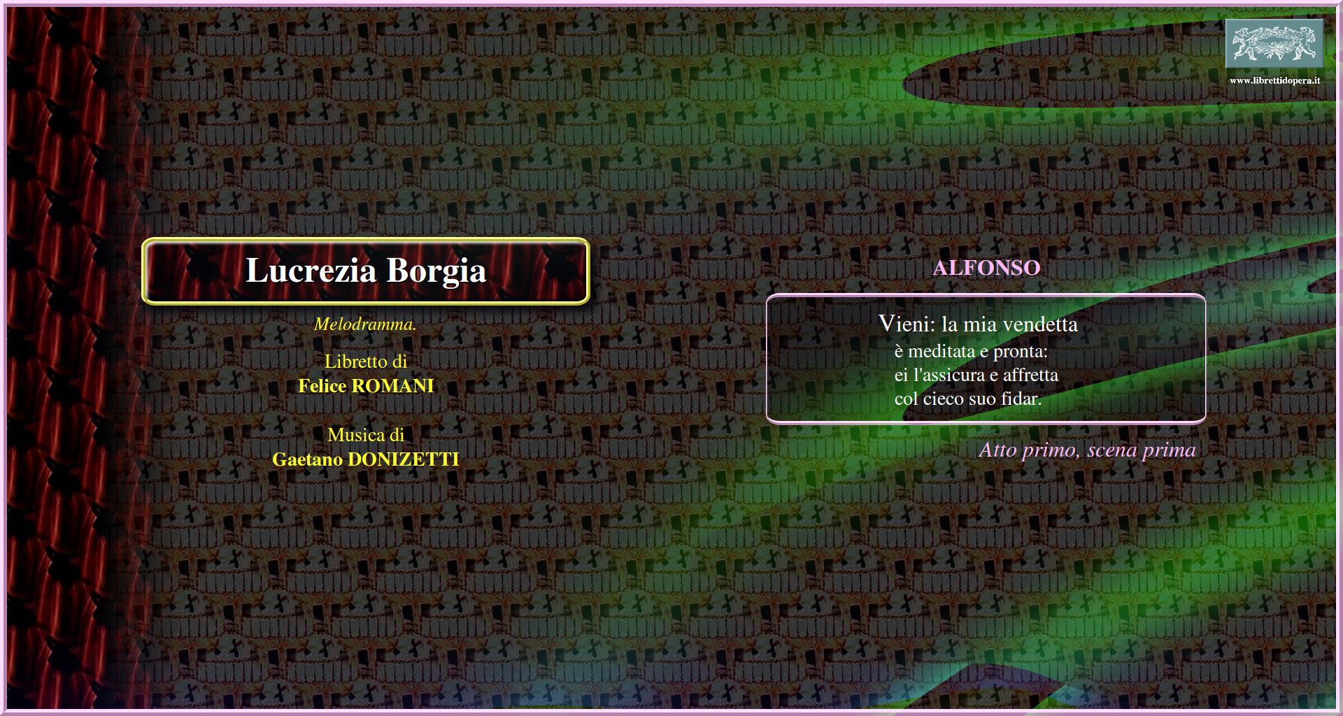 Mentre geme il cor sommesso Vieni: la mia vendetta Il segreto per esser felici M'odi... ah! M'odi... Io non t'imploro Era desso il figlio mio