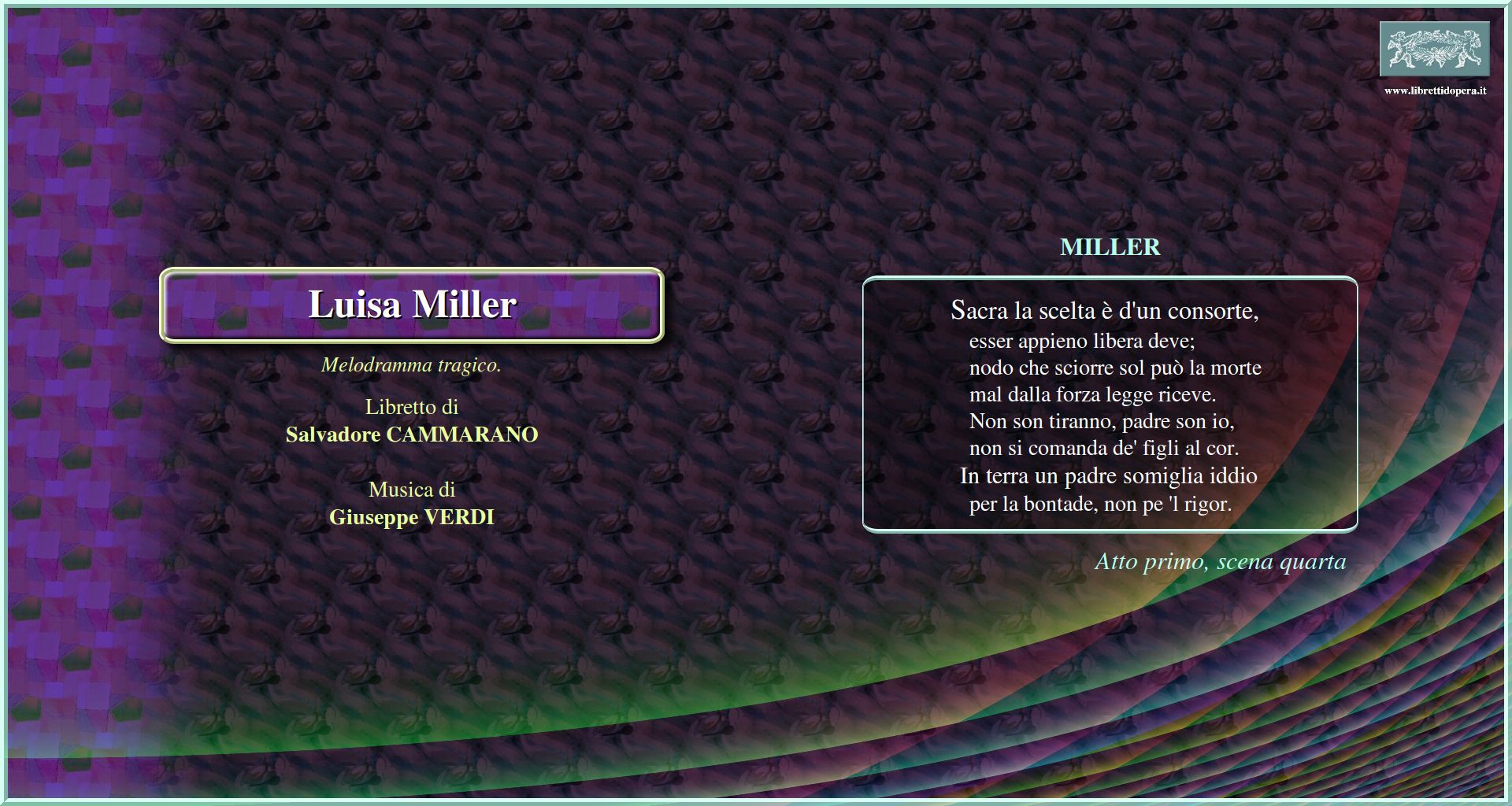 Lo vidi, e 'l primo palpito Ah! fu giusto il mio sospetto! Sacra la scelta è d'un consorte Il mio sangue, la vita darei Tu puniscimi, o signore Quando le sere al placido L'ara, o l'avello apprestami Andrem, raminghi e poveri Padre... ricevi l'estremo addio