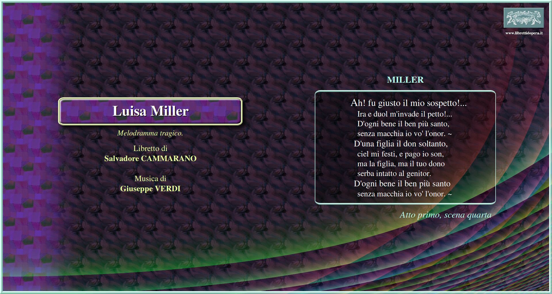Lo vidi, e 'l primo palpito Ah! fu giusto il mio sospetto! Sacra la scelta è d'un consorte Il mio sangue, la vita darei Tu puniscimi, o signore Quando le sere al placido L'ara, o l'avello apprestami Andrem, raminghi e poveri Padre... ricevi l'estremo addio