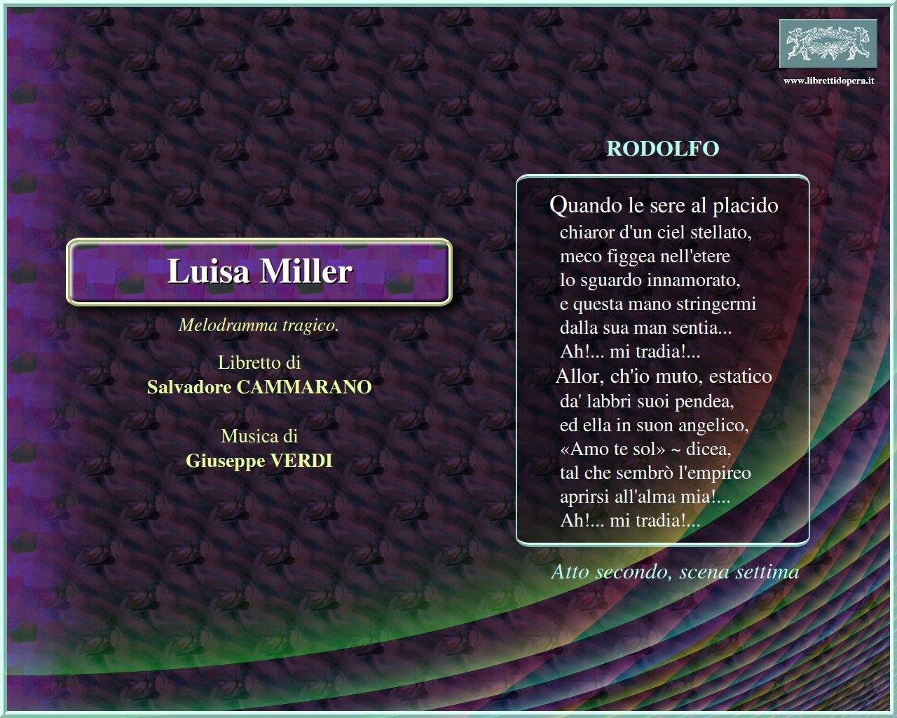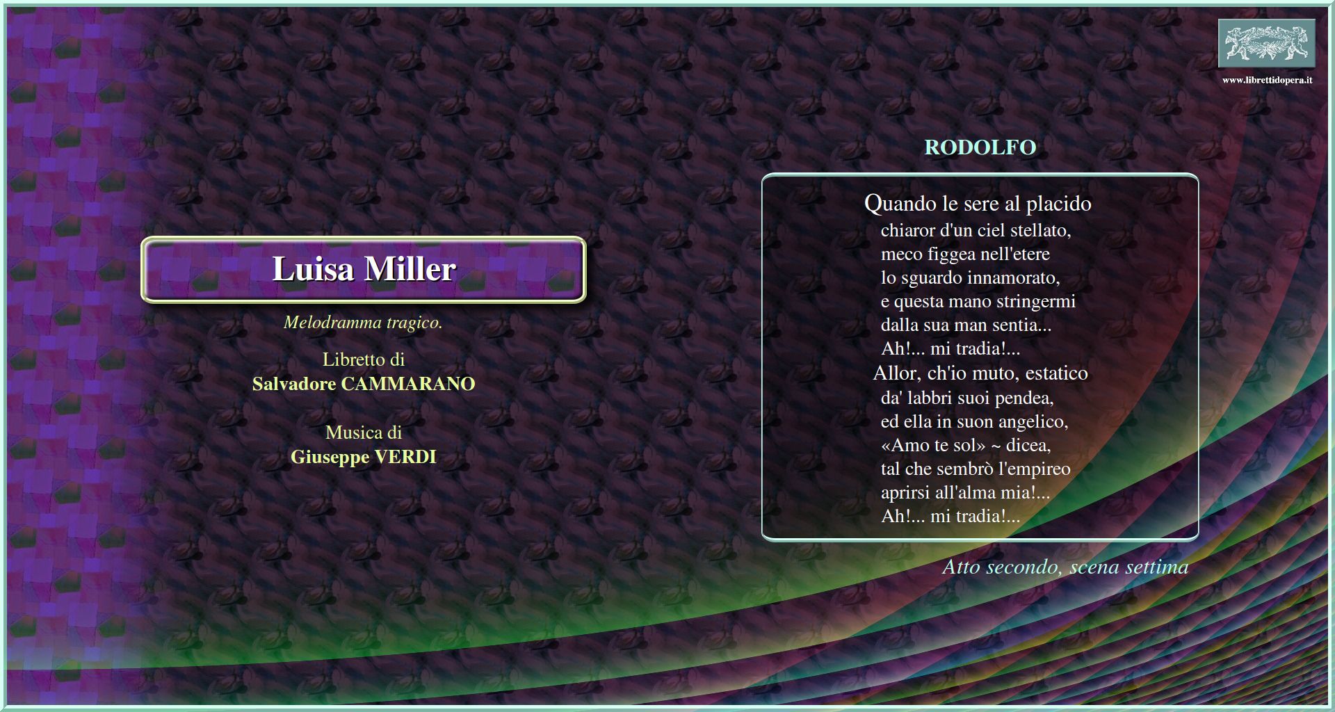 Lo vidi, e 'l primo palpito Ah! fu giusto il mio sospetto! Sacra la scelta è d'un consorte Il mio sangue, la vita darei Tu puniscimi, o signore Quando le sere al placido L'ara, o l'avello apprestami Andrem, raminghi e poveri Padre... ricevi l'estremo addio