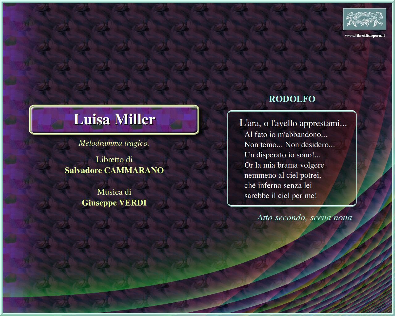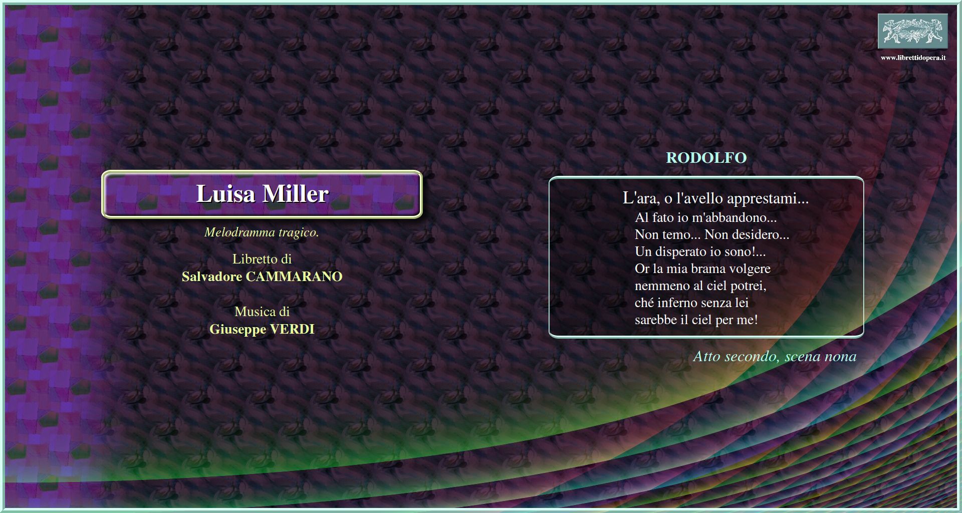 Lo vidi, e 'l primo palpito Ah! fu giusto il mio sospetto! Sacra la scelta è d'un consorte Il mio sangue, la vita darei Tu puniscimi, o signore Quando le sere al placido L'ara, o l'avello apprestami Andrem, raminghi e poveri Padre... ricevi l'estremo addio