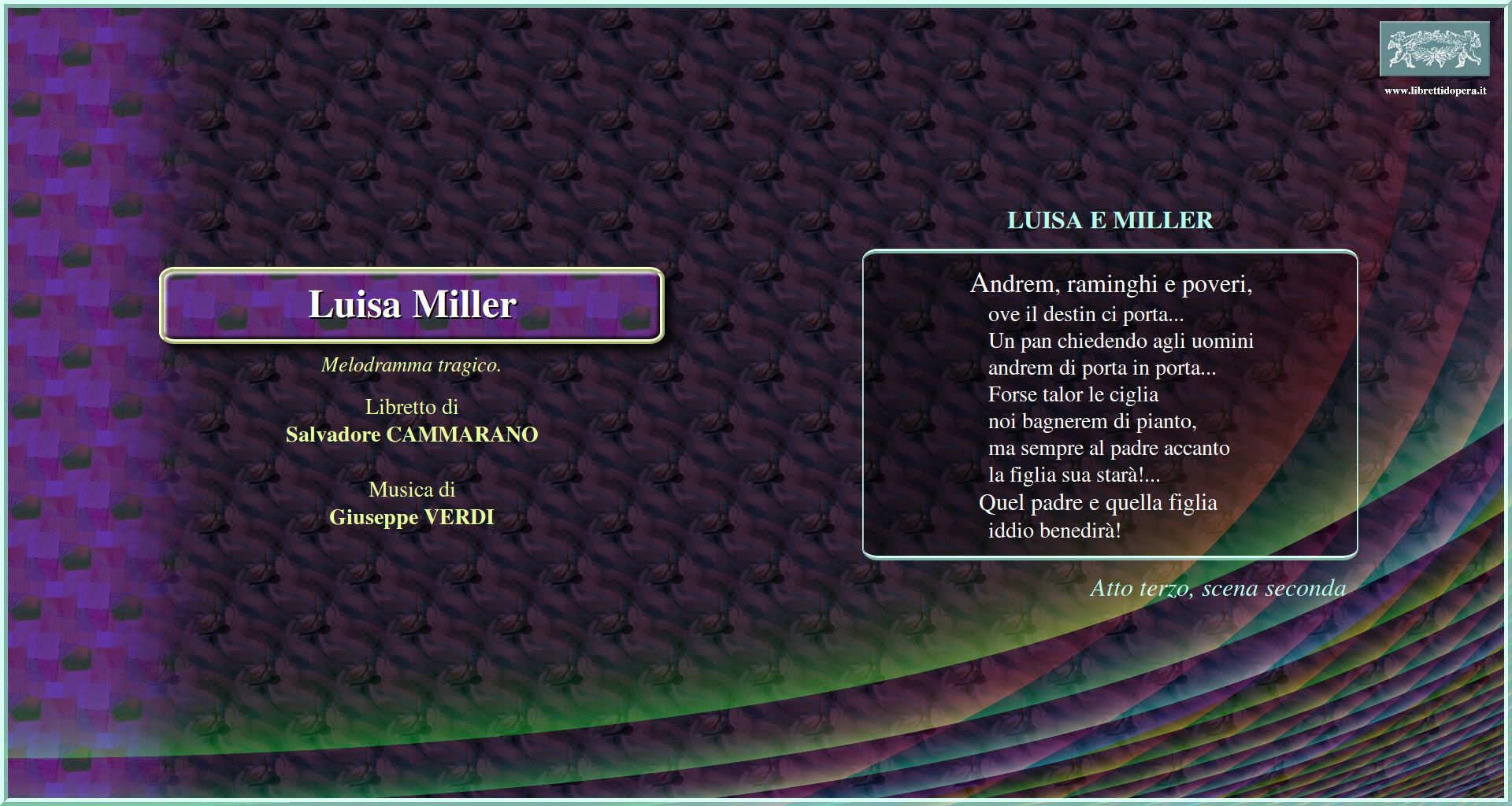 Lo vidi, e 'l primo palpito Ah! fu giusto il mio sospetto! Sacra la scelta è d'un consorte Il mio sangue, la vita darei Tu puniscimi, o signore Quando le sere al placido L'ara, o l'avello apprestami Andrem, raminghi e poveri Padre... ricevi l'estremo addio