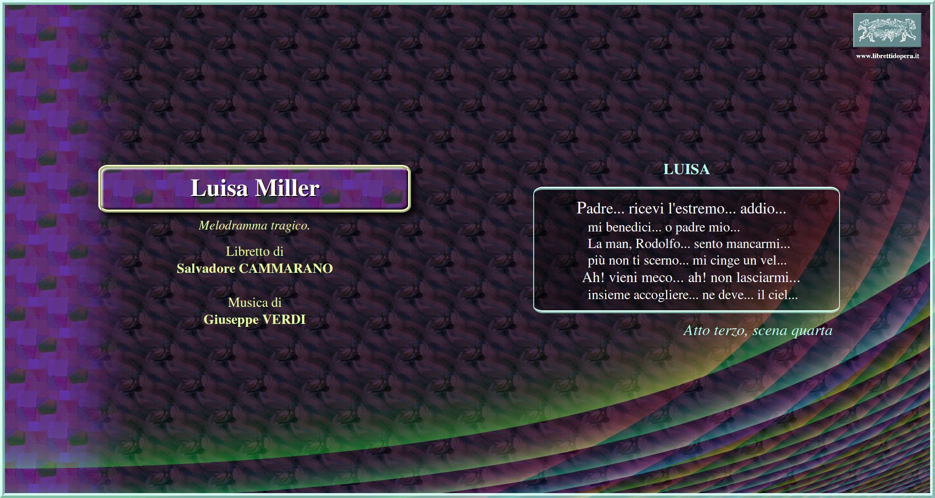 Lo vidi, e 'l primo palpito Ah! fu giusto il mio sospetto! Sacra la scelta è d'un consorte Il mio sangue, la vita darei Tu puniscimi, o signore Quando le sere al placido L'ara, o l'avello apprestami Andrem, raminghi e poveri Padre... ricevi l'estremo addio