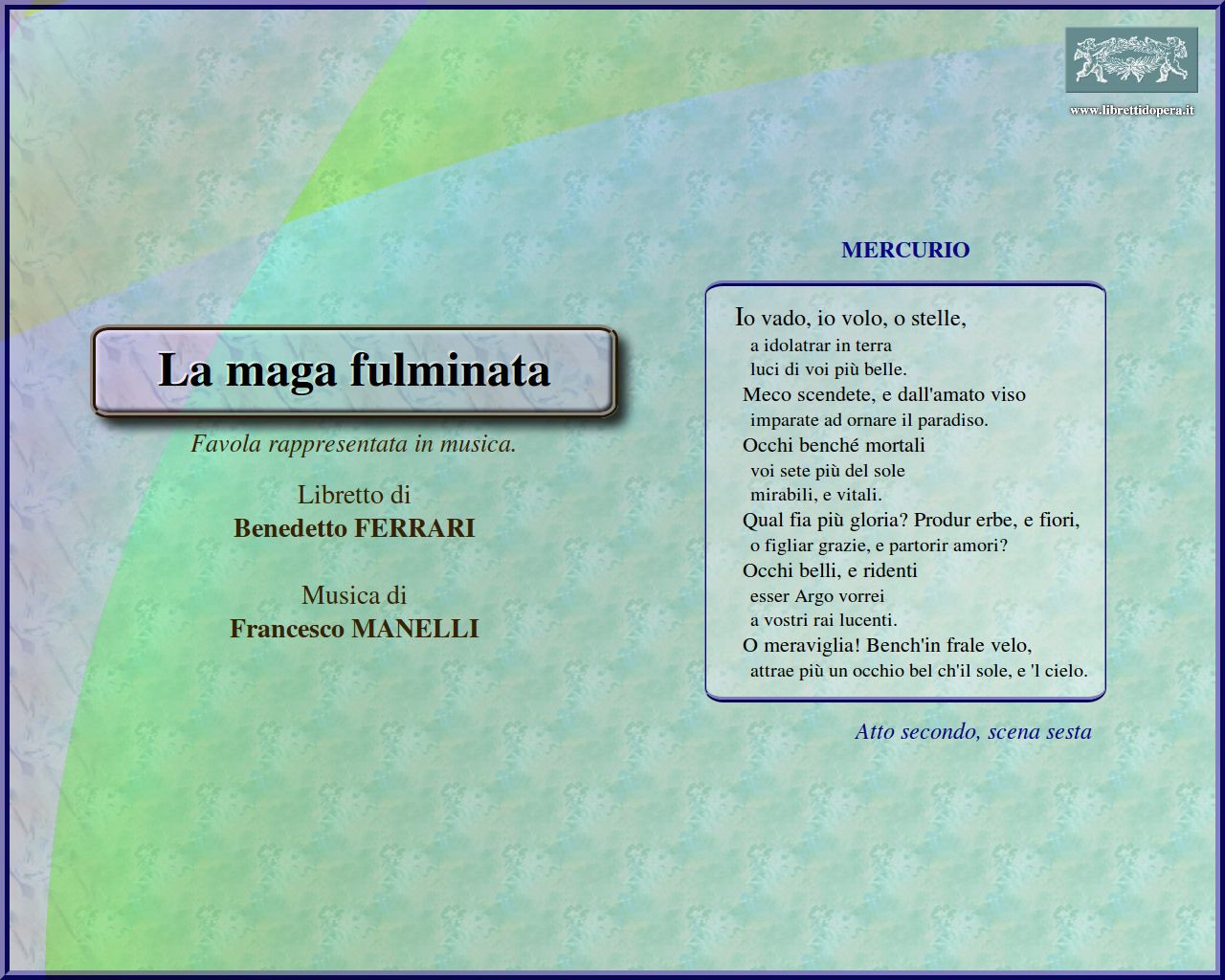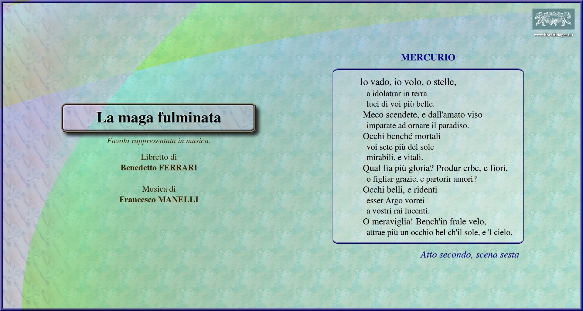Vadin al diavol tutti i governi Io vado, io volo, o stelle Alfin son sogni le grandezze umane