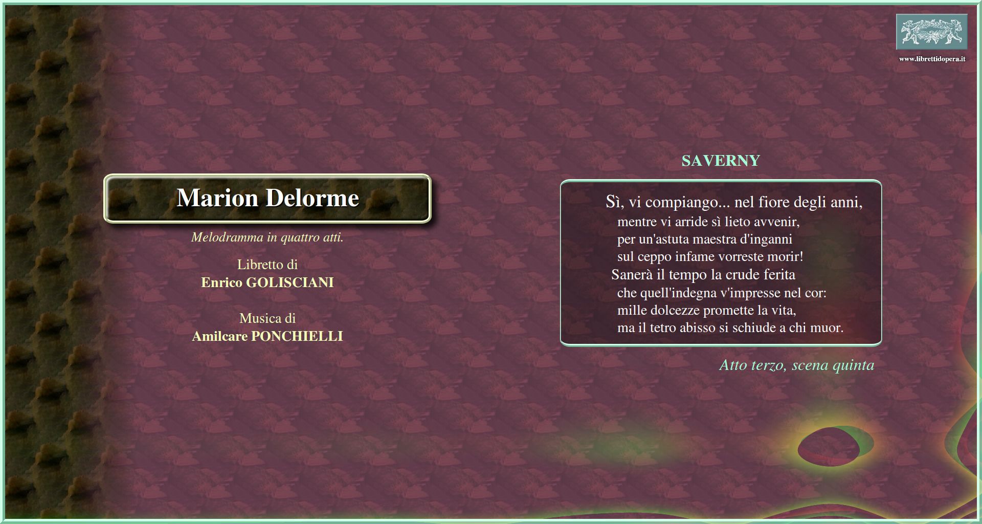 Sia gloria a Venere Non ha che un tempo solo Sì, vi compiango... nel fiore degli anni Parmi un lontano ruggito di tempesta