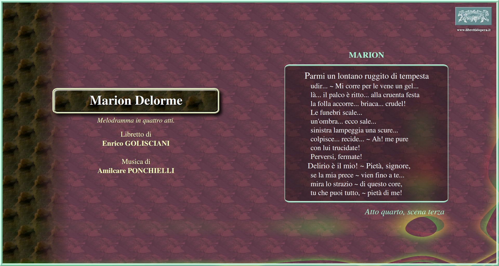 Sia gloria a Venere Non ha che un tempo solo Sì, vi compiango... nel fiore degli anni Parmi un lontano ruggito di tempesta