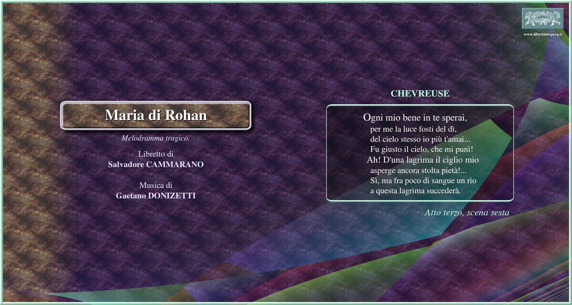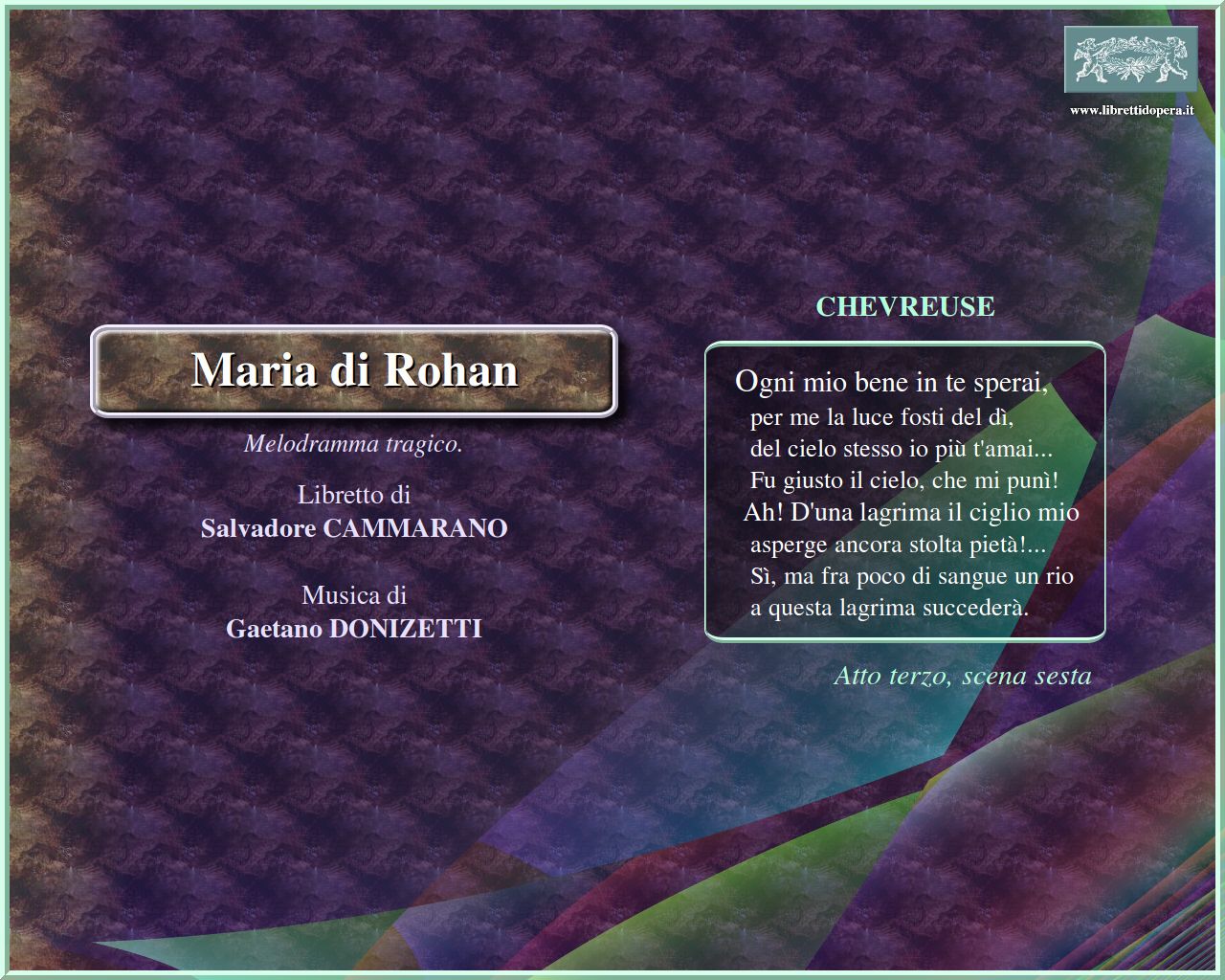 Cupa, fatal mestizia Gemea di tetro carcere Alma soave e cara Ogni mio bene in te sperai