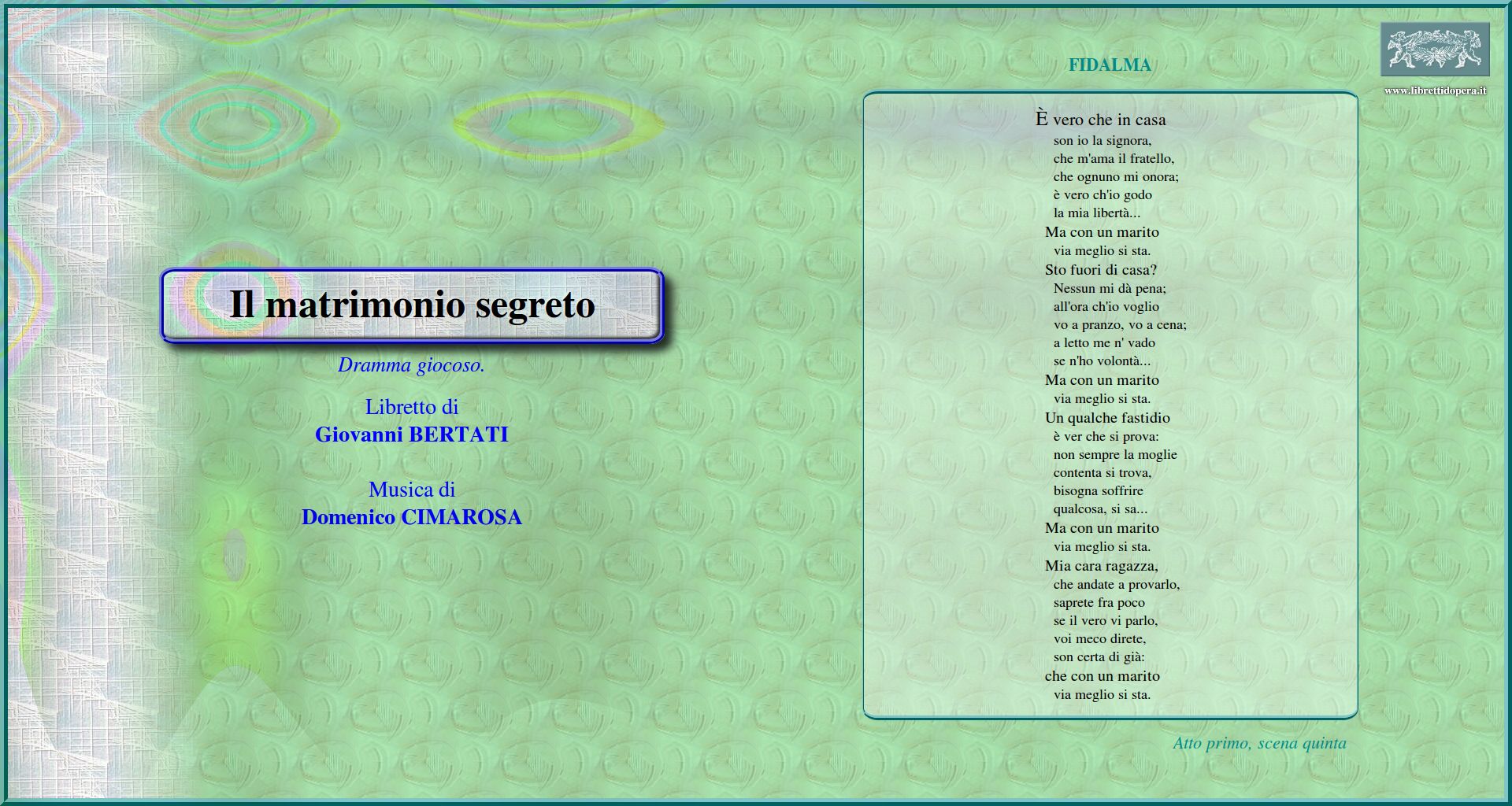 Udite, tutti udite È vero che in casa Perdonate, signor mio Pria che spunti in ciel l'aurora Son lunatico bilioso