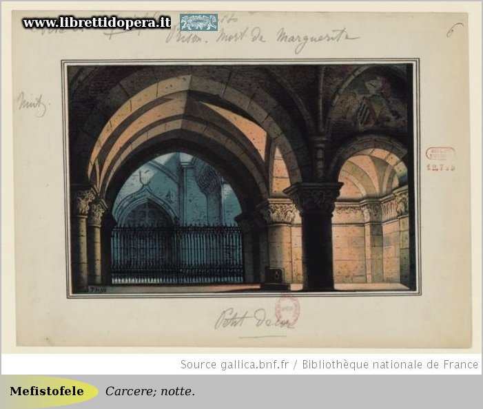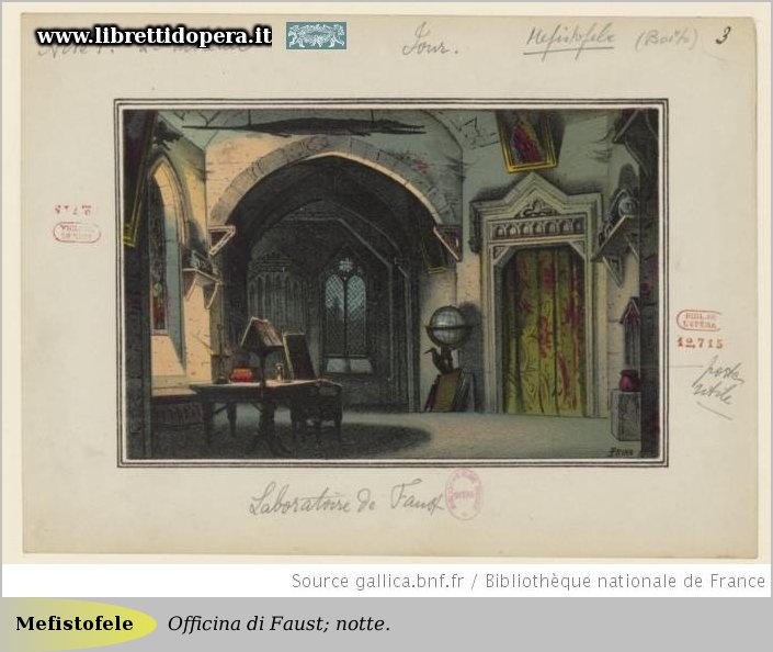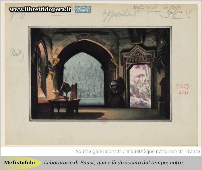 La morte di Faust. Laboratorio di Faust, come nell'atto primo, ma qua e là diroccato dal tempo.