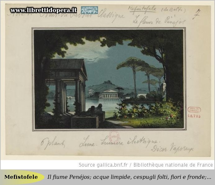 Nel fondo Elena e Pantalis in una cimba di madreperla e d'argento; un gruppo di Sirene intorno alla barca. Faust giacerà assopito sulle zolle fiorite.