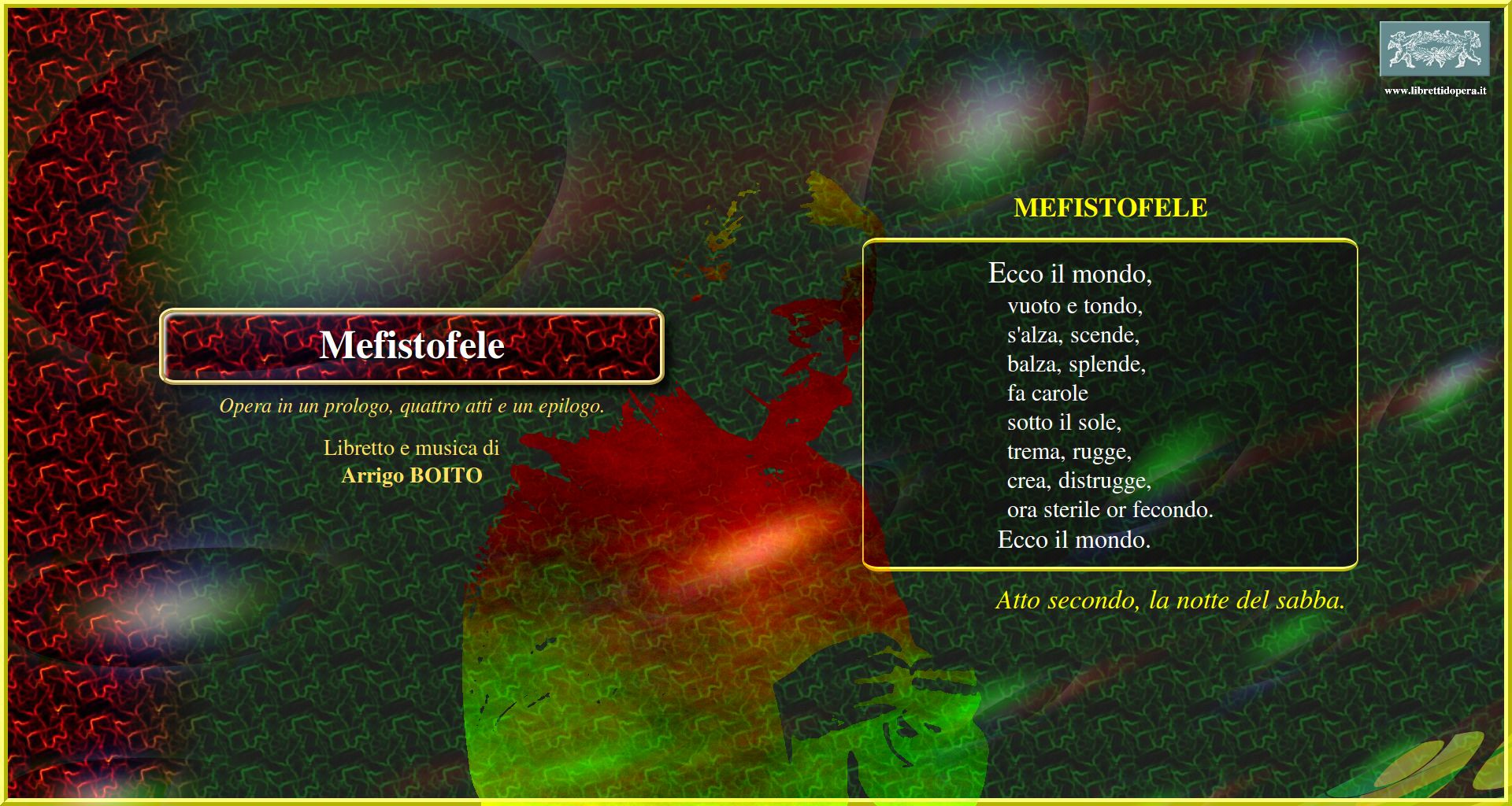 Ave signor. Perdona se il mio gergo Son lo spirito che nega Riddiamo! Riddiamo! che il mondo è caduto! Ecco il mondo Lontano, lontano, lontano Forma ideal, purissima Giunto sul passo estremo