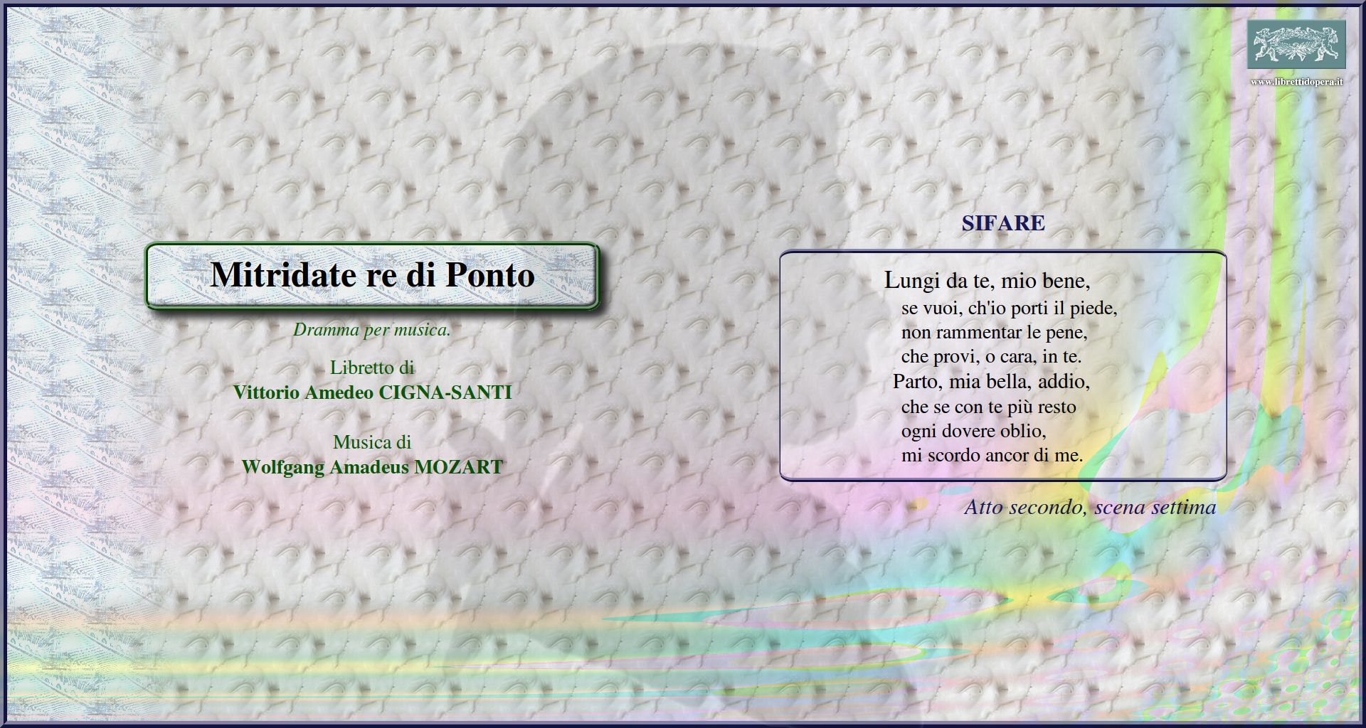 Nel sen mi palpita Se di lauri il crine adorno Lungi da te, mio bene Nel grave tormento Pallid'ombre, che scorgete