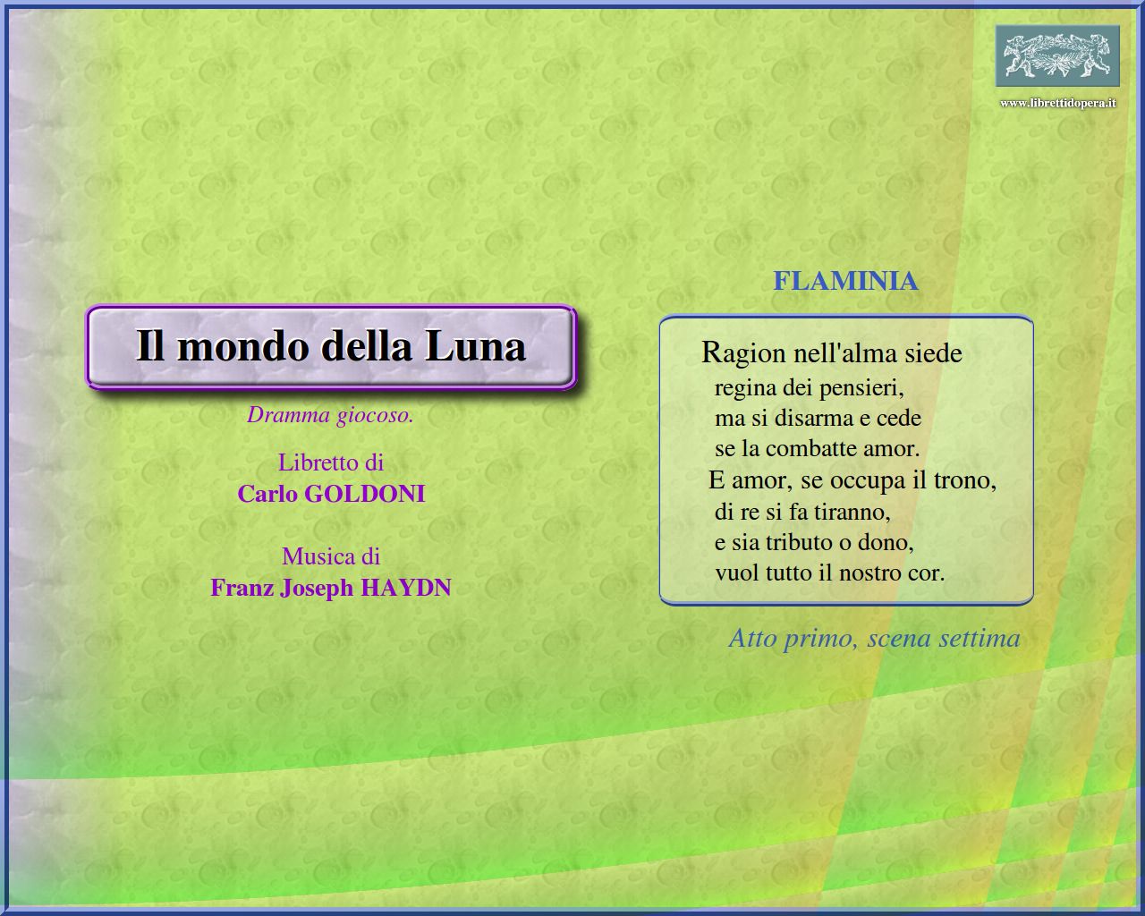 O Luna lucente Quanti sciocchi mortali Ragion nell'alma siede Un avaro suda e pena Un certo ruscelletto