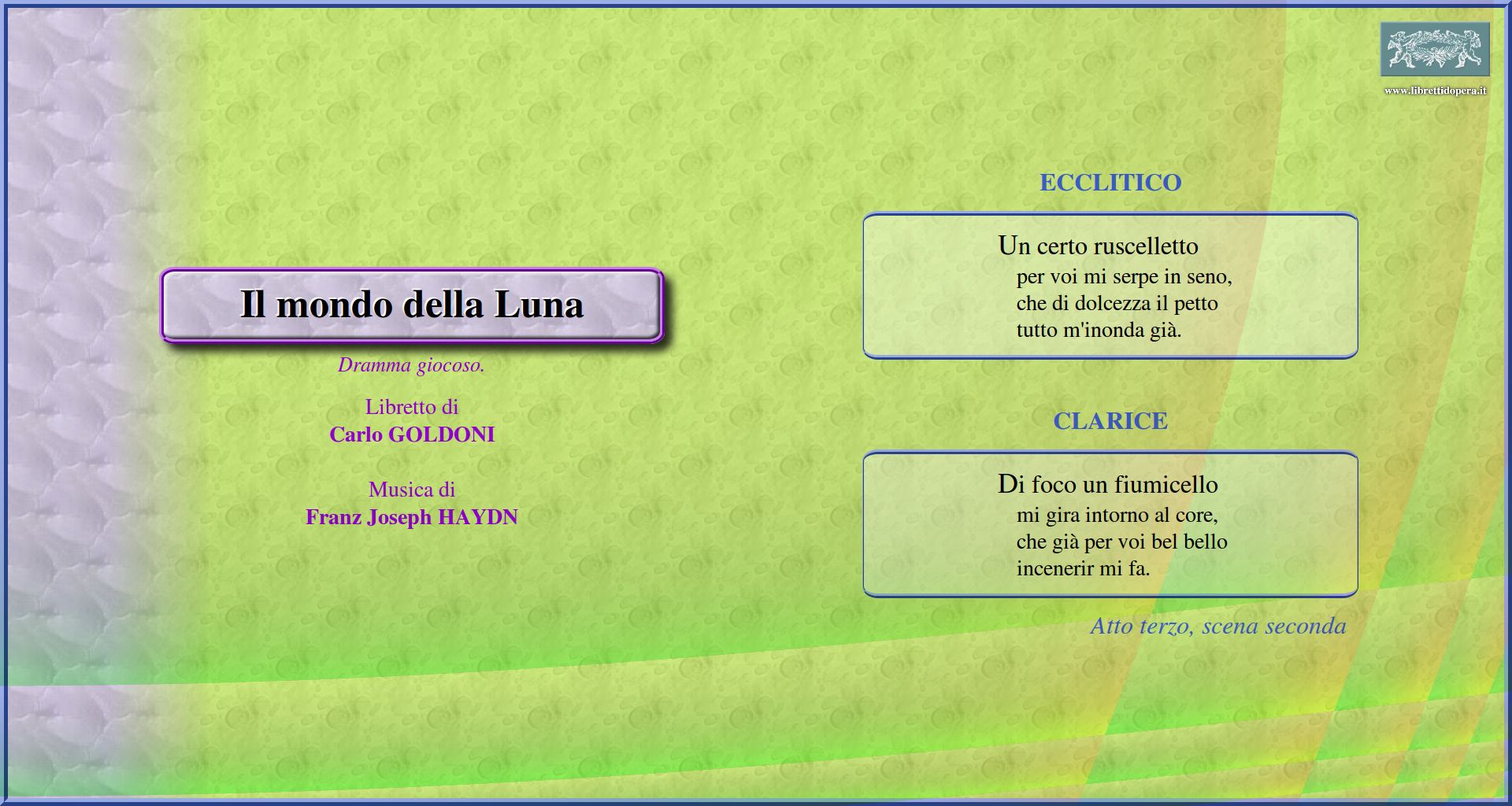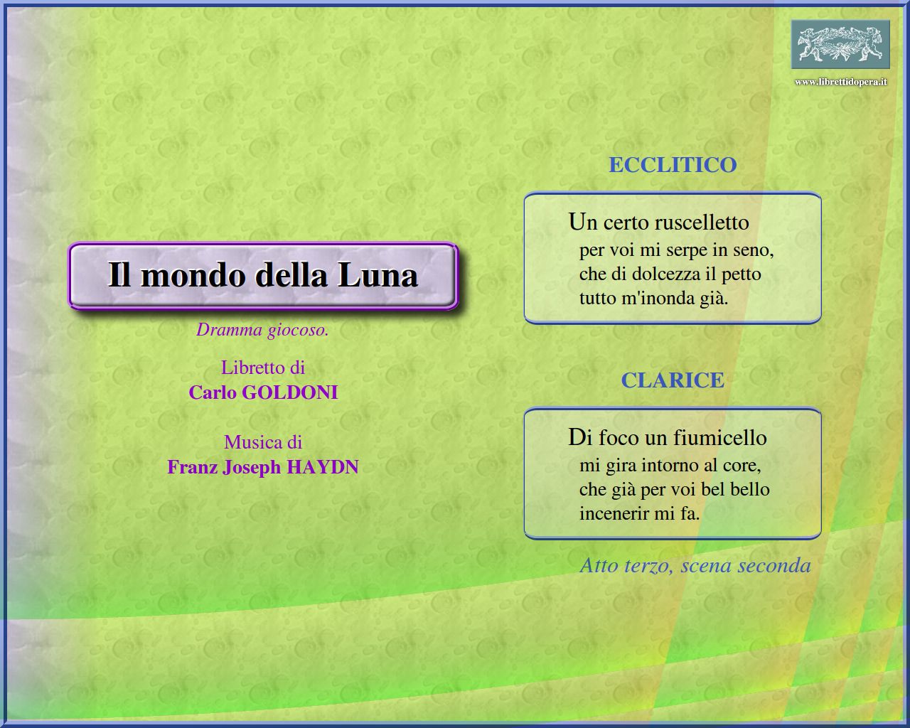 O Luna lucente Quanti sciocchi mortali Ragion nell'alma siede Un avaro suda e pena Un certo ruscelletto