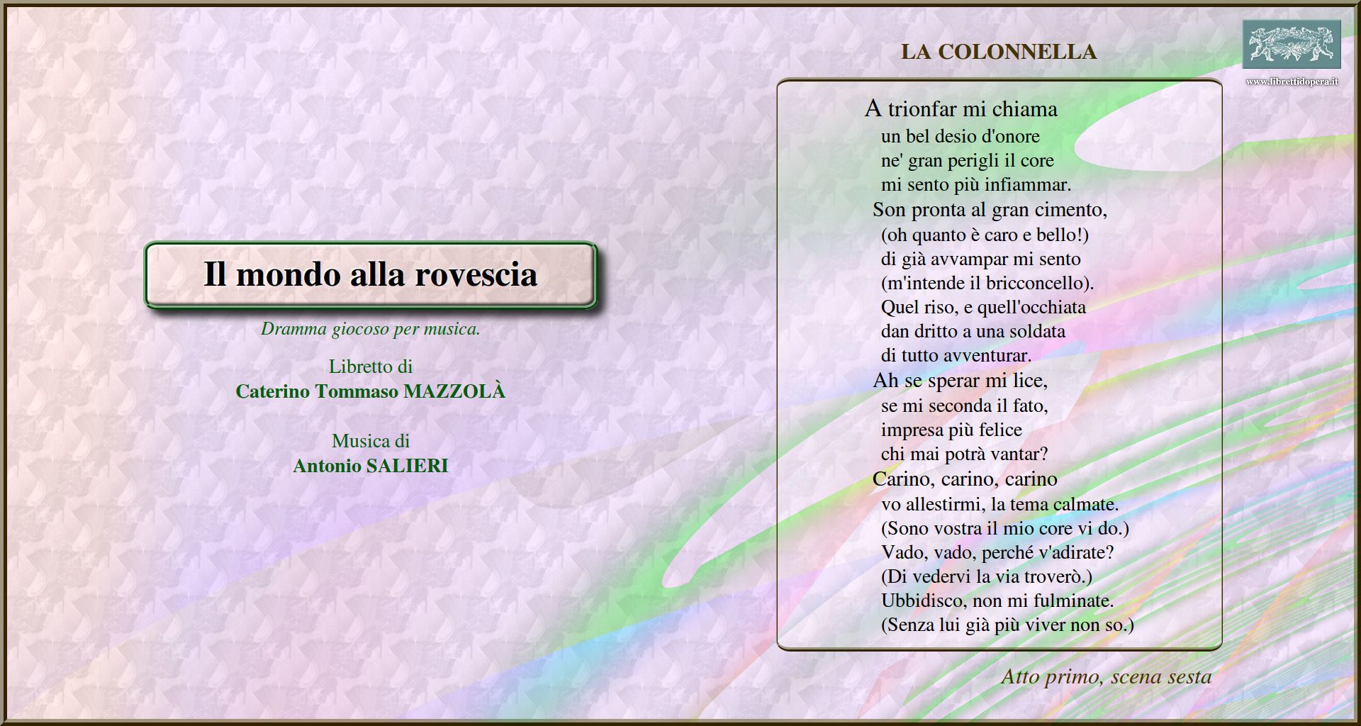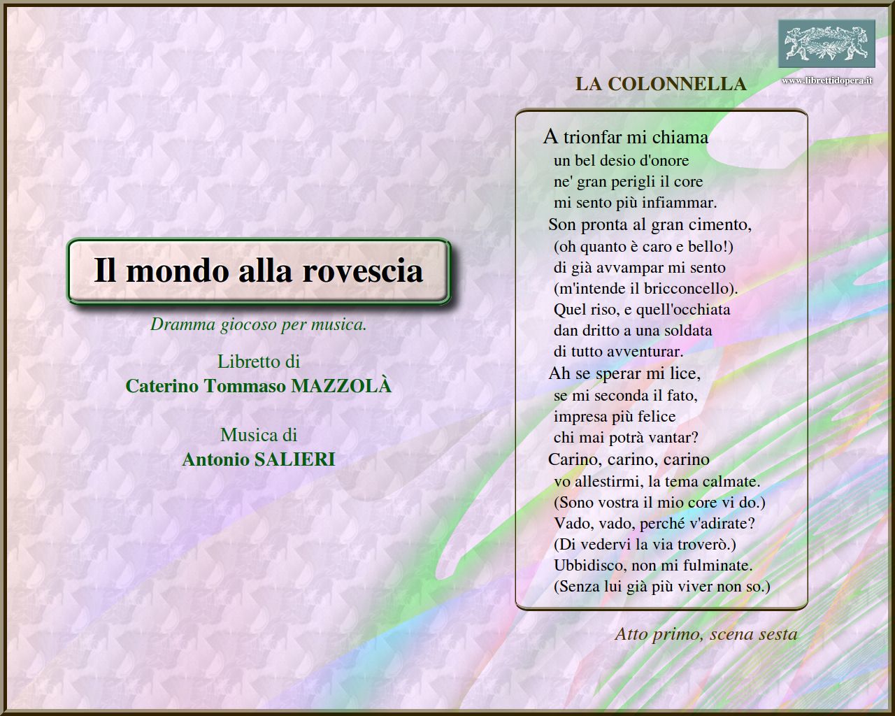 A trionfar mi chiama Il conte, La colonnella, La marchesa, La generala, L'aiutanta Tranquilla e placida