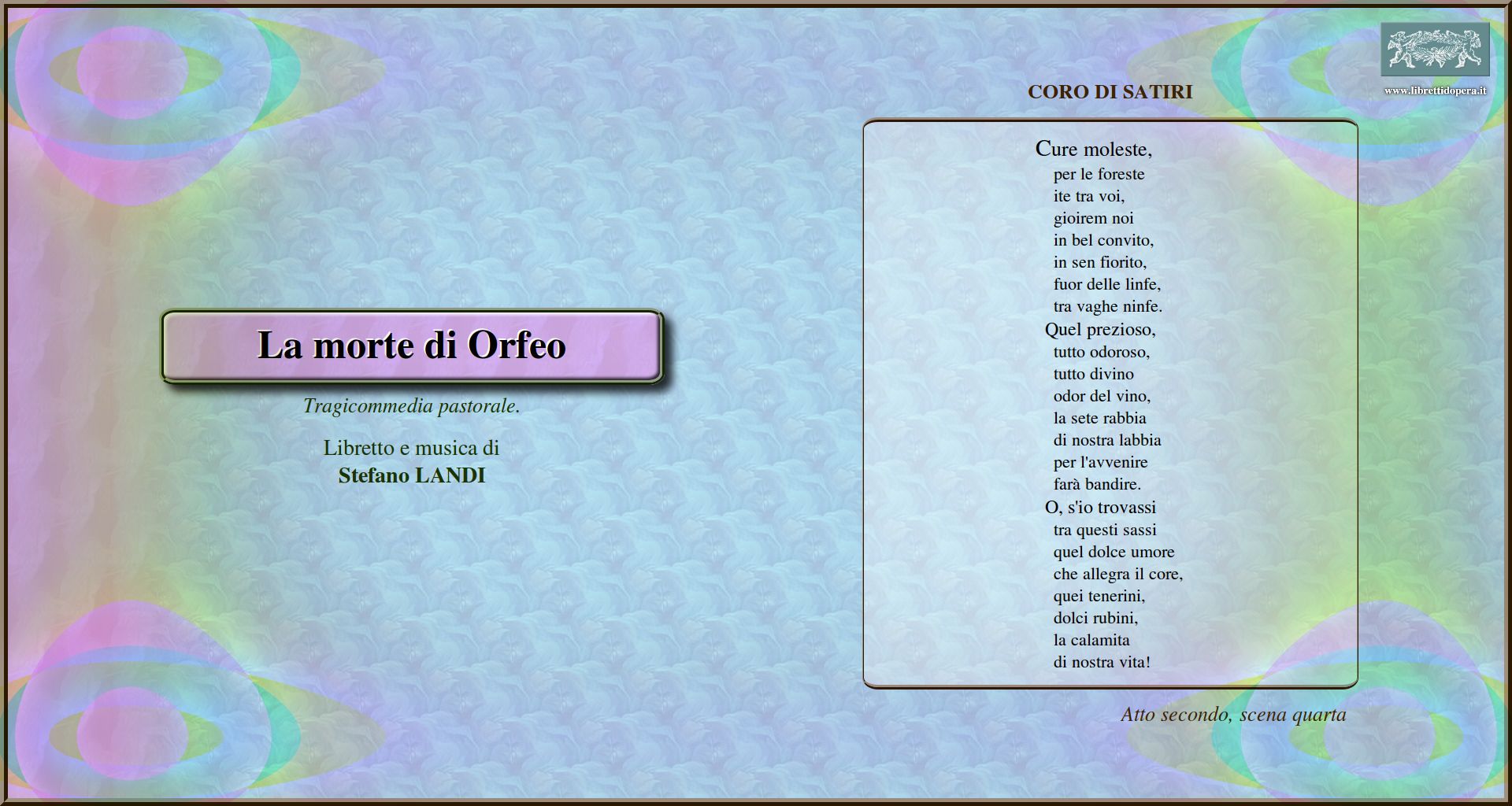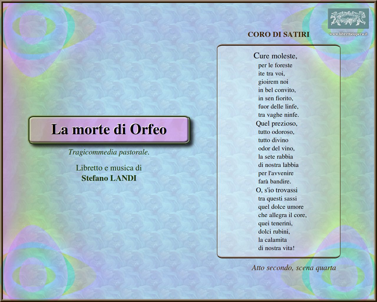 Ecco, dall'orizzonte Cure moleste O quante strida, o quanti Ahi, dolor che m'uccidi! Tante volte all'inferno e torni e parti Venite, o vaghe stelle