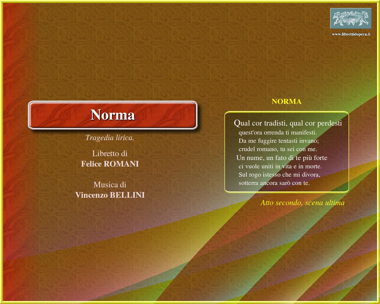 Pagina della partitura Ite sul colle, o druidi Me protegge, me difende Meco all'altar di Venere Ah! bello a me ritorna Casta diva, che inargenti Va', crudele; al dio spietato Oh, non tremare, o perfido Dormono entrambi... non vedran la mano Deh! con te, con te, li prendi Guerra, guerra! Le galliche selve Qual cor tradisti, qual cor perdesti