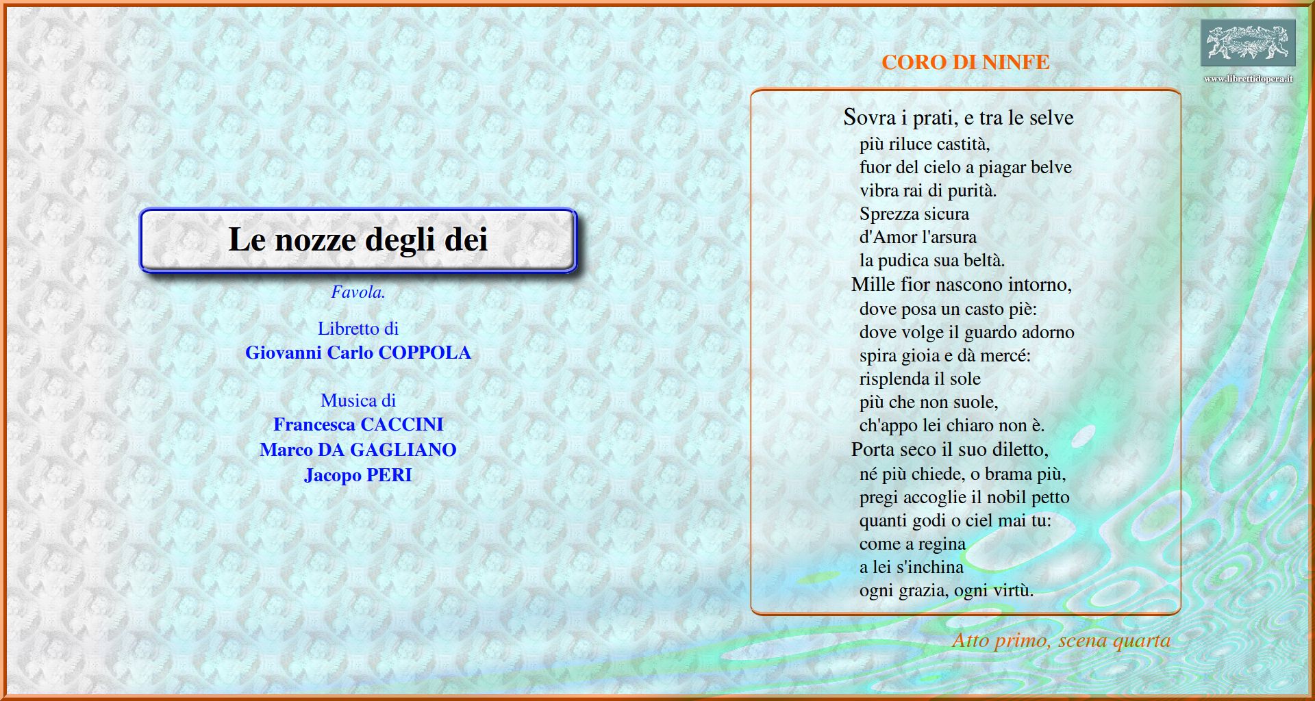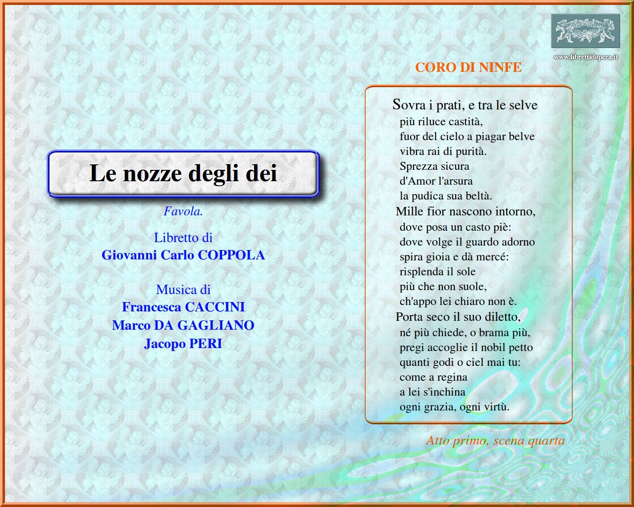 Sovra i prati, e tra le selve Amoretti vezzosetti Non è gioia senza amore Spargi tu per gli aurei calli