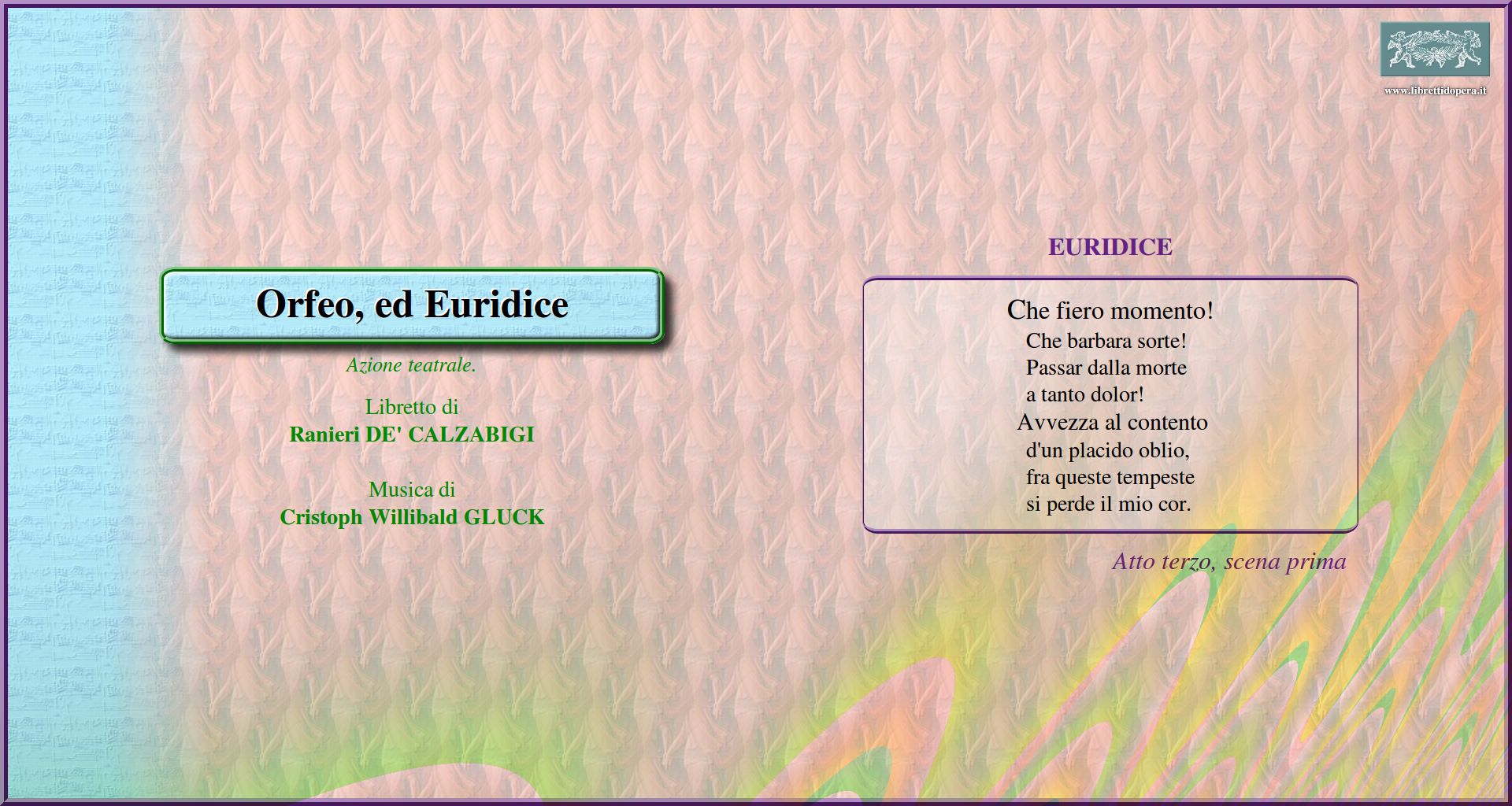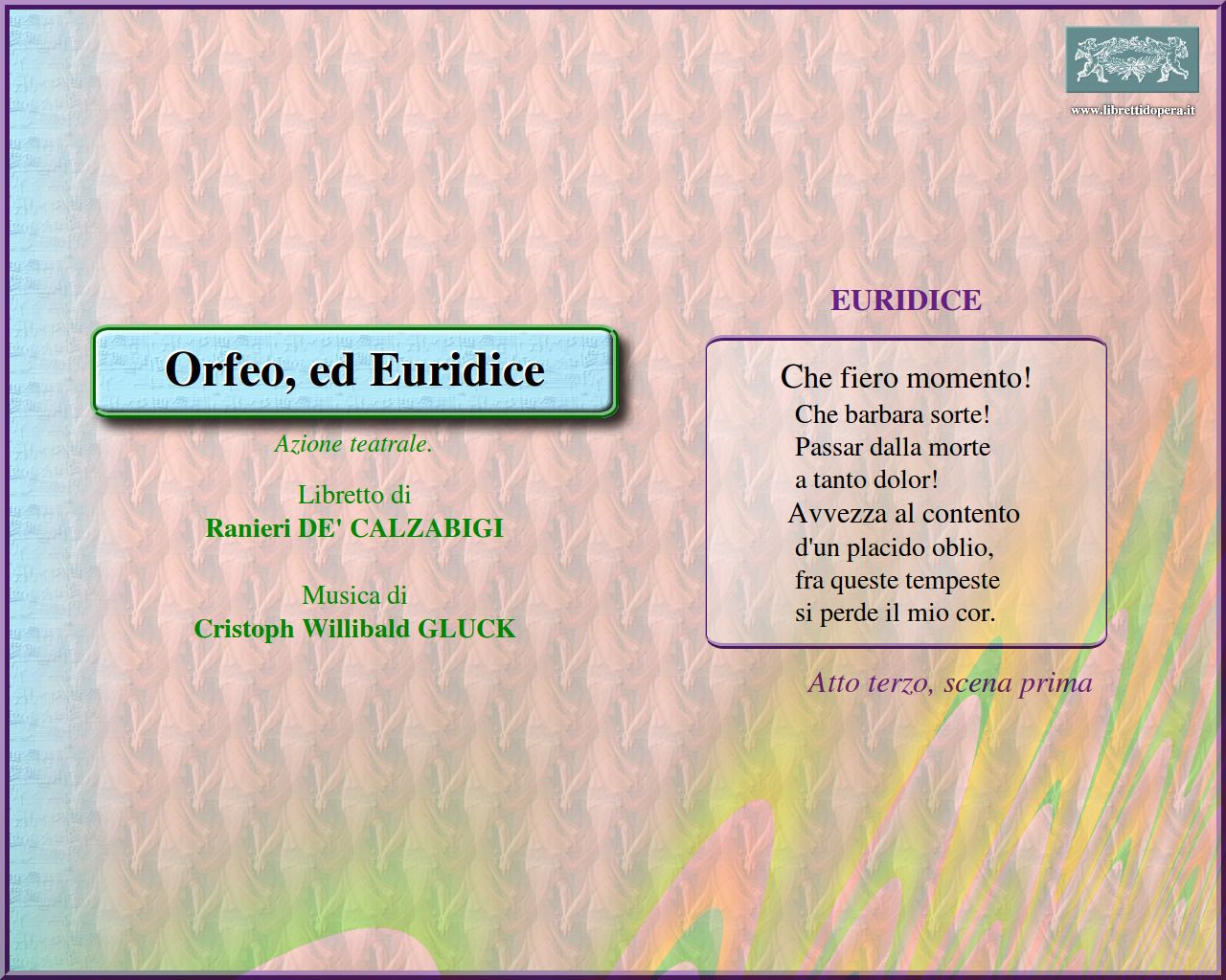 Gli sguardi trattieni Che puro ciel! Che chiaro sol! Che farò senza Euridice! Che fiero momento!