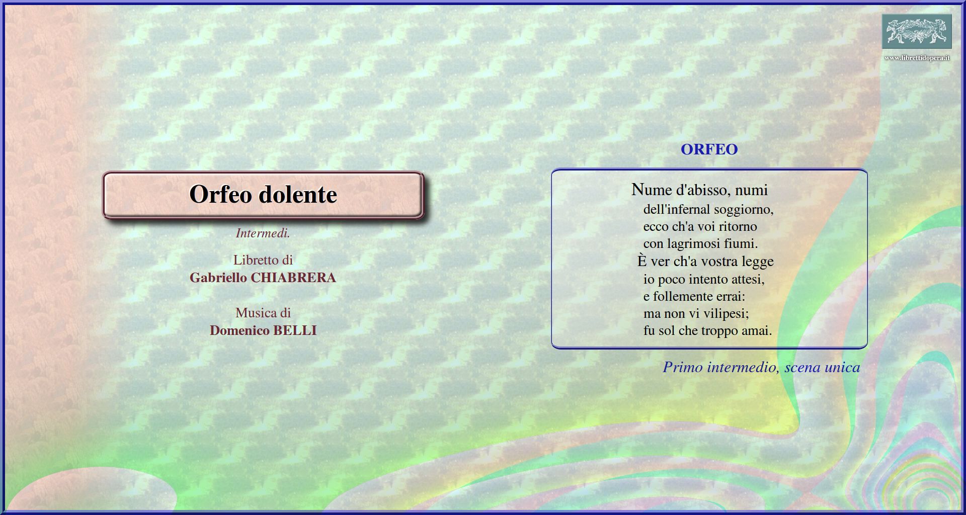Nume d'abisso, numi Rive ombrose e selvagge Dunque in sen d'erbose valli
