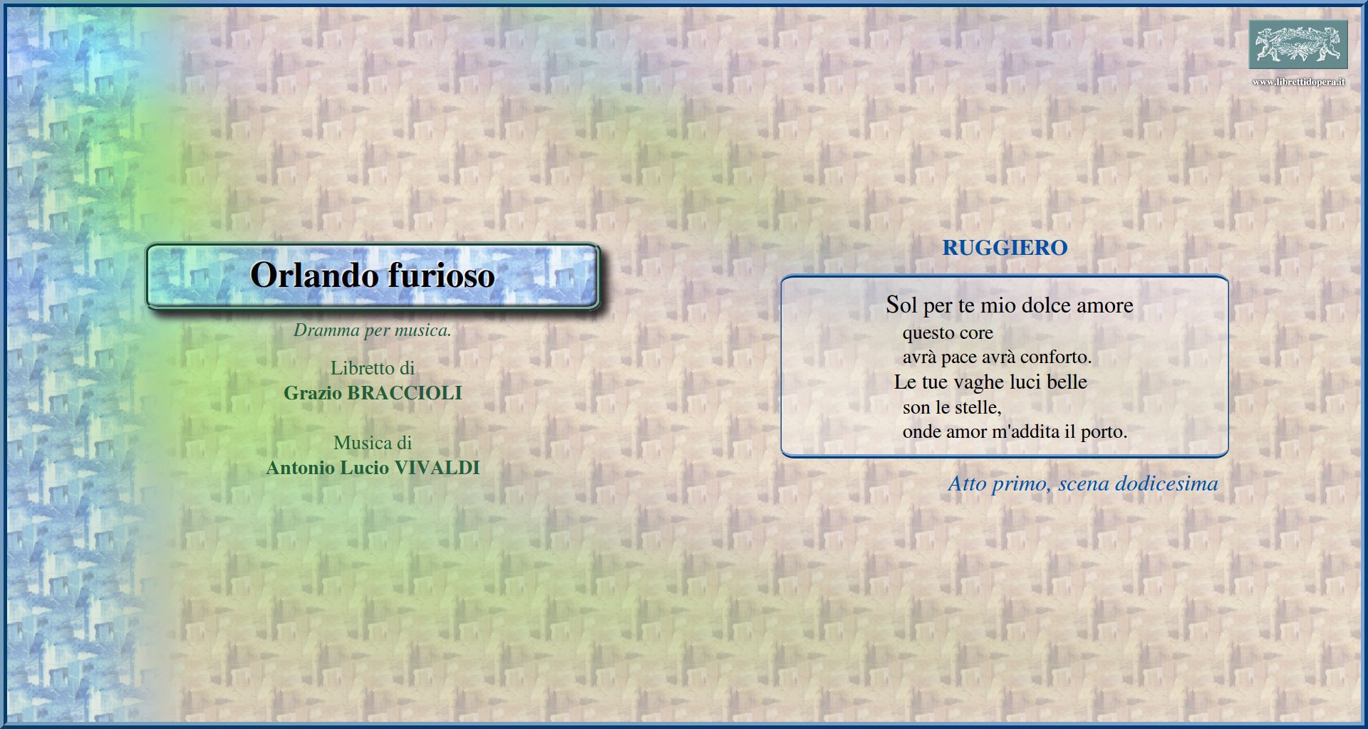 Sol per te mio dolce amore Ho cento vanni al piede Non è felice un'alma