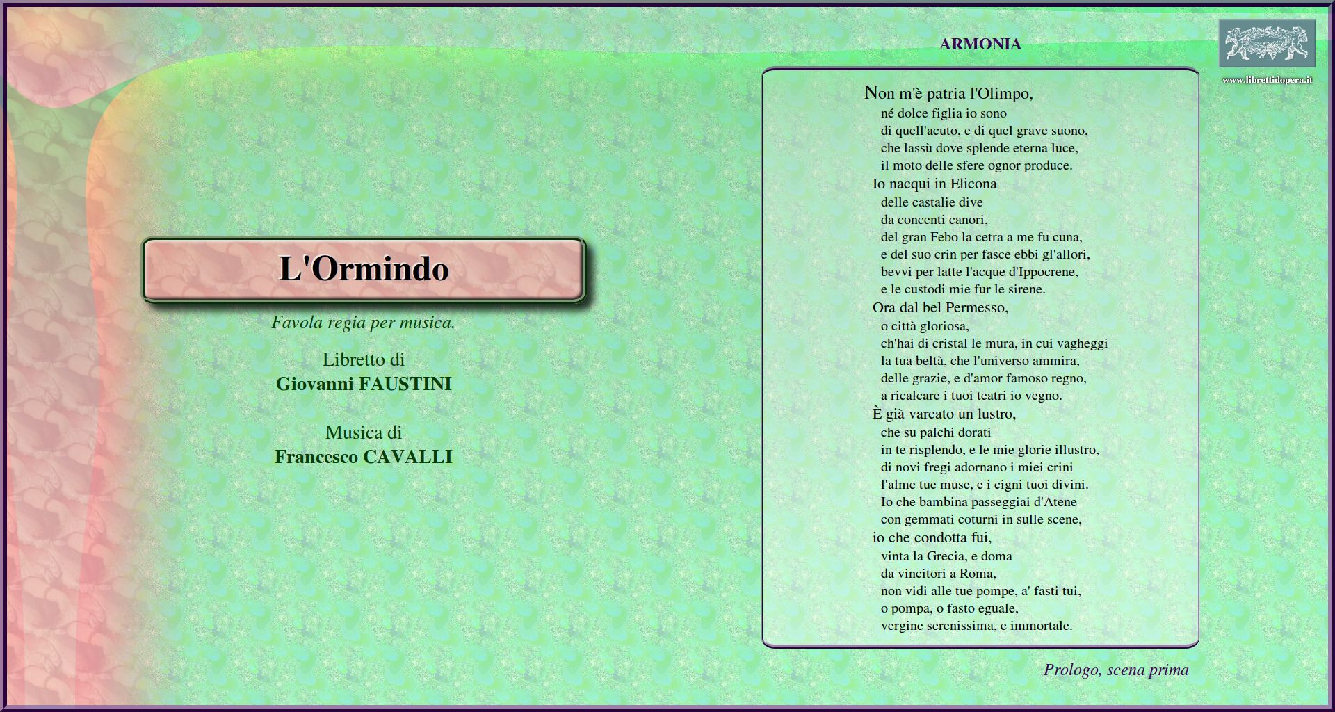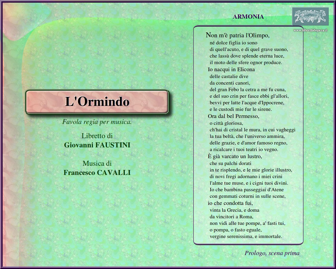 Non m'è patria l'Olimpo O sciocchi amanti, o sciocchi Che città, che città Invan spendete l'ore Ti seguo anima mia