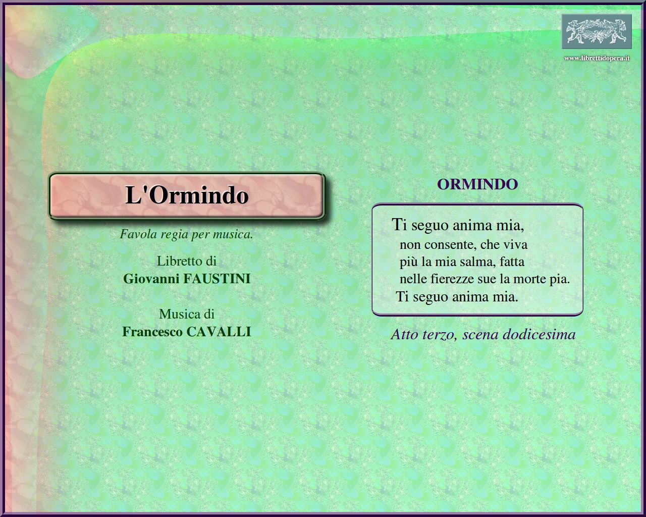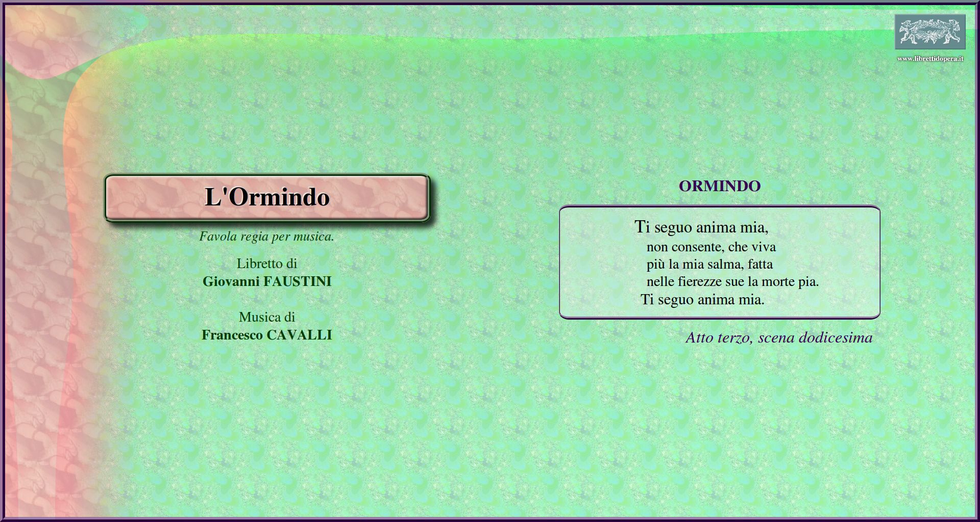 Non m'è patria l'Olimpo O sciocchi amanti, o sciocchi Che città, che città Invan spendete l'ore Ti seguo anima mia