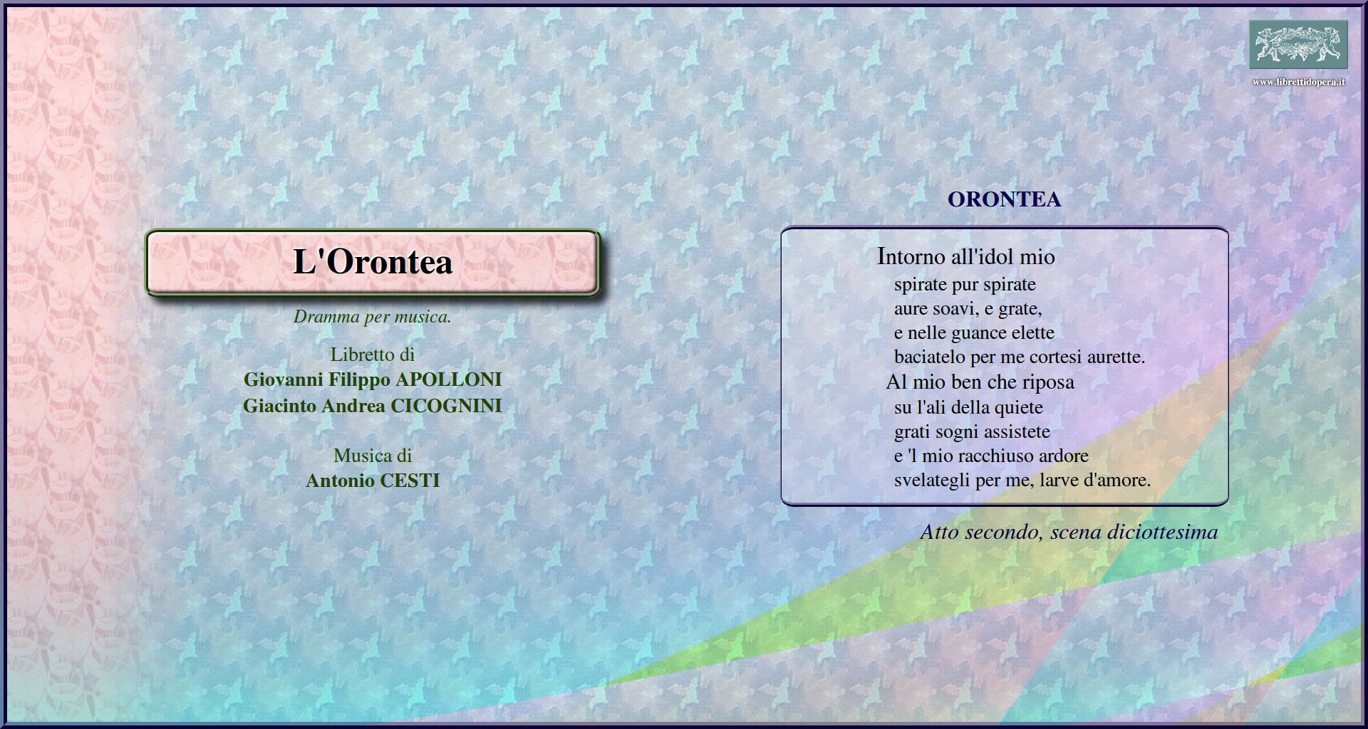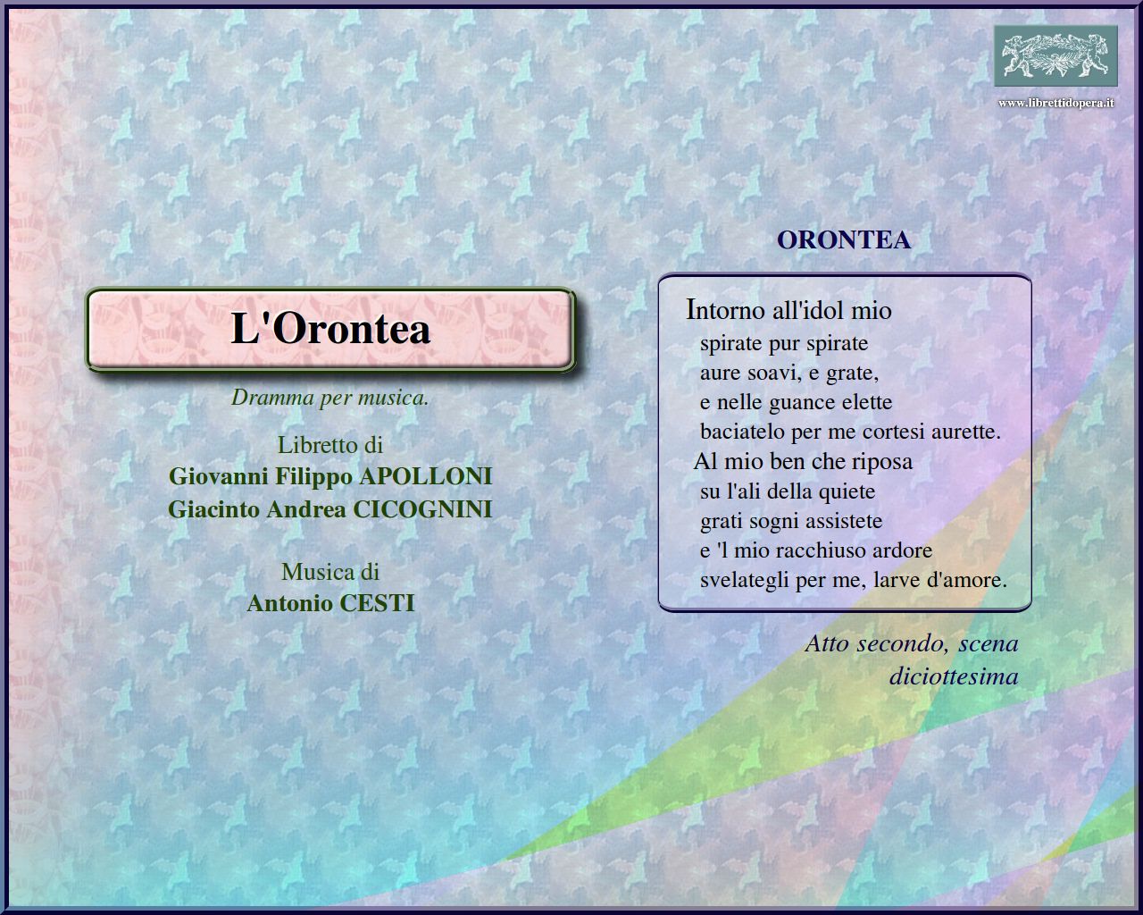 Superbo Amore al mondo imperi Io ch'amore in sen non ho Intorno all'idol mio