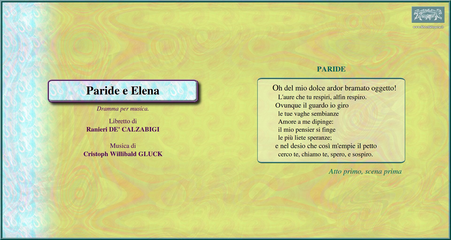 Oh del mio dolce ardor bramato oggetto! Le belle imagini d'un dolce amore Quegli occhi belli Lo potrò! Ma frattanto, oh infelice! Presto fugge la beltà