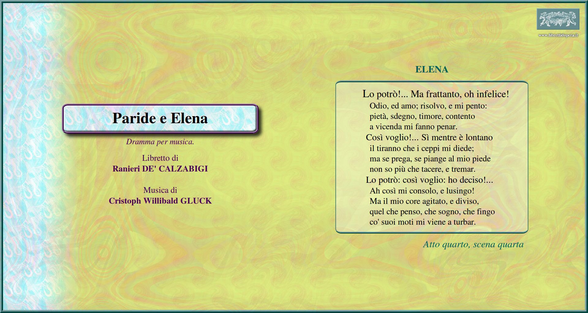 Oh del mio dolce ardor bramato oggetto! Le belle imagini d'un dolce amore Quegli occhi belli Lo potrò! Ma frattanto, oh infelice! Presto fugge la beltà