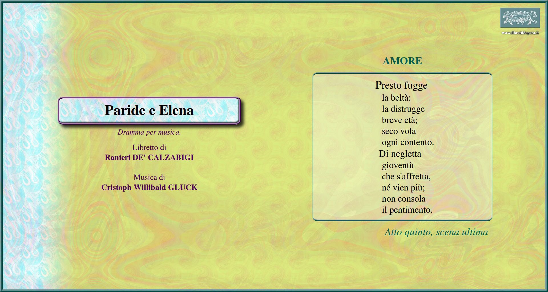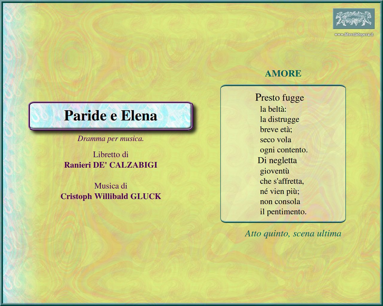 Oh del mio dolce ardor bramato oggetto! Le belle imagini d'un dolce amore Quegli occhi belli Lo potrò! Ma frattanto, oh infelice! Presto fugge la beltà