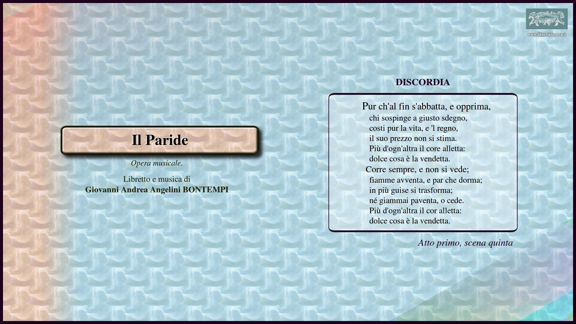 Atto primo Atto secondo Atto terzo Atto quarto Atto quinto