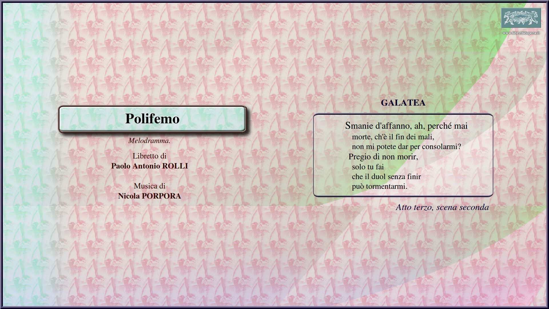 Dolci, fresche aurette grate Fortunate pecorelle! Smanie d'affanno, ah, perché mai A ninfa, quando vuol, non manca amante