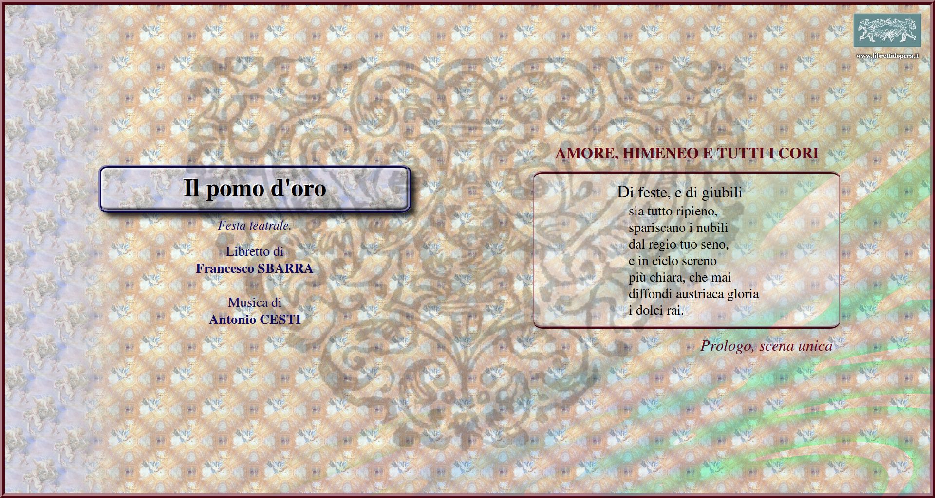 Di feste, e di giubili E dove t'aggiri Questo Marte ora, ch'è a cena O del ben, che acquisterò O mio caro io sono offesa Io spesi il mio fiato O morbide erbette S'a te sacre fra le dive Imparate in avvenire