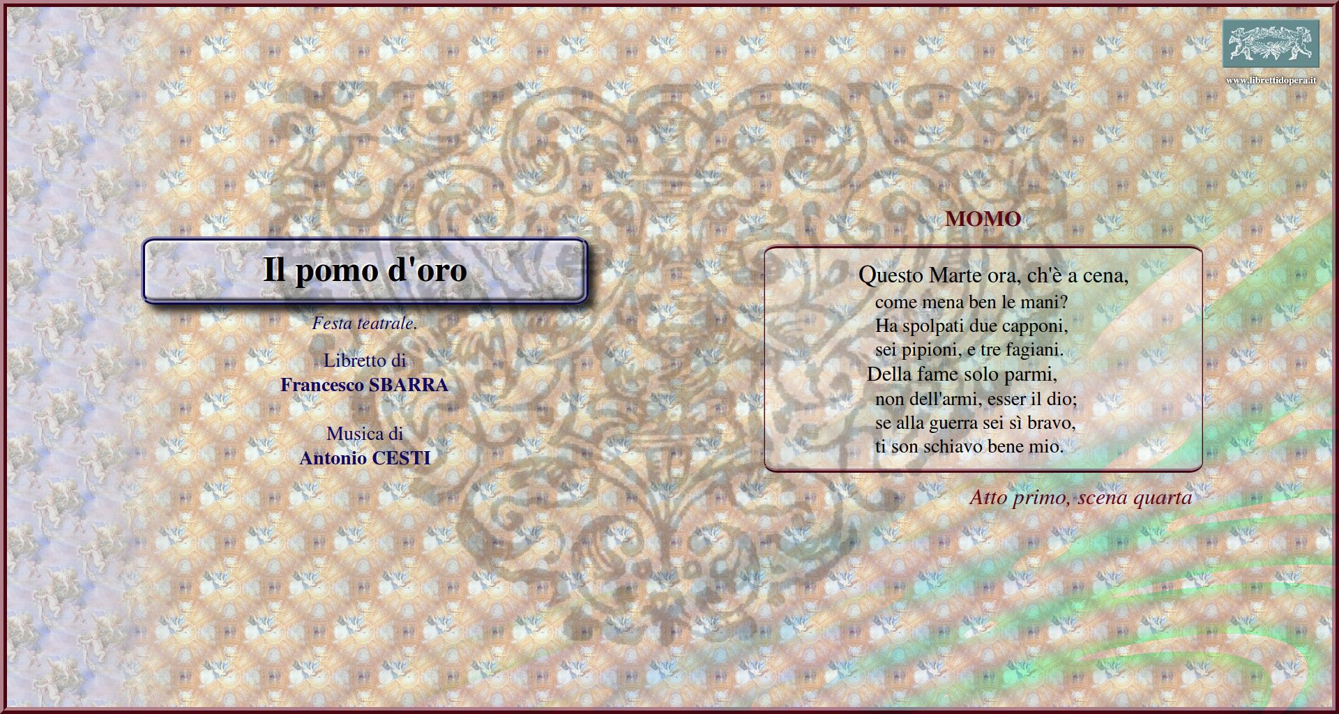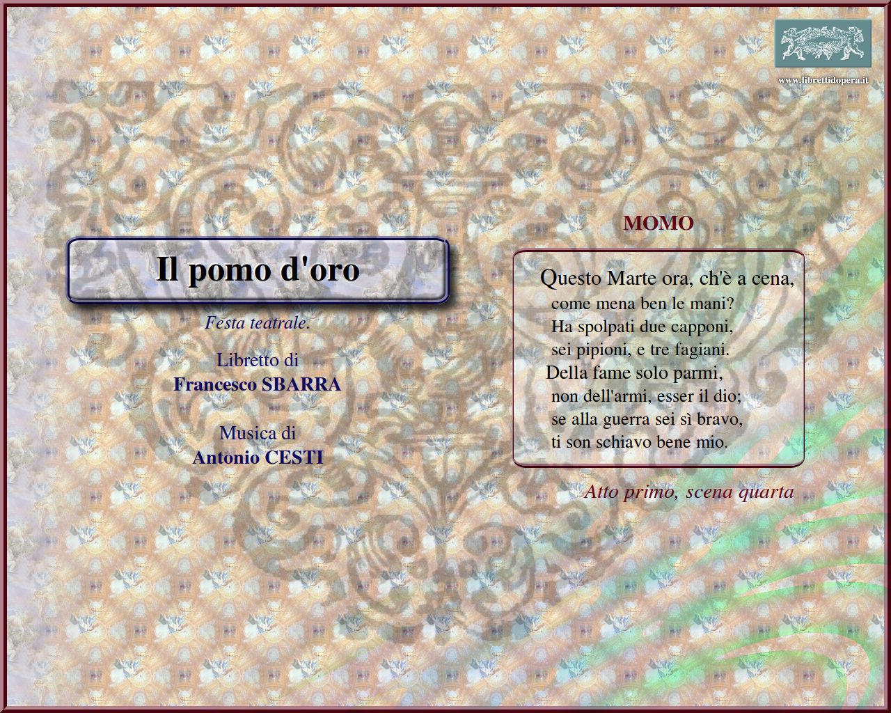 Di feste, e di giubili E dove t'aggiri Questo Marte ora, ch'è a cena O del ben, che acquisterò O mio caro io sono offesa Io spesi il mio fiato O morbide erbette S'a te sacre fra le dive Imparate in avvenire