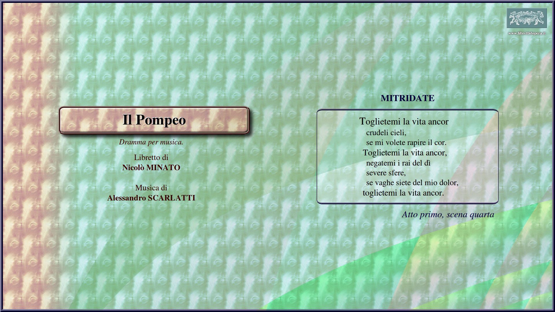 Toglietemi la vita ancor O cessate di piagarmi Lusingami speranza