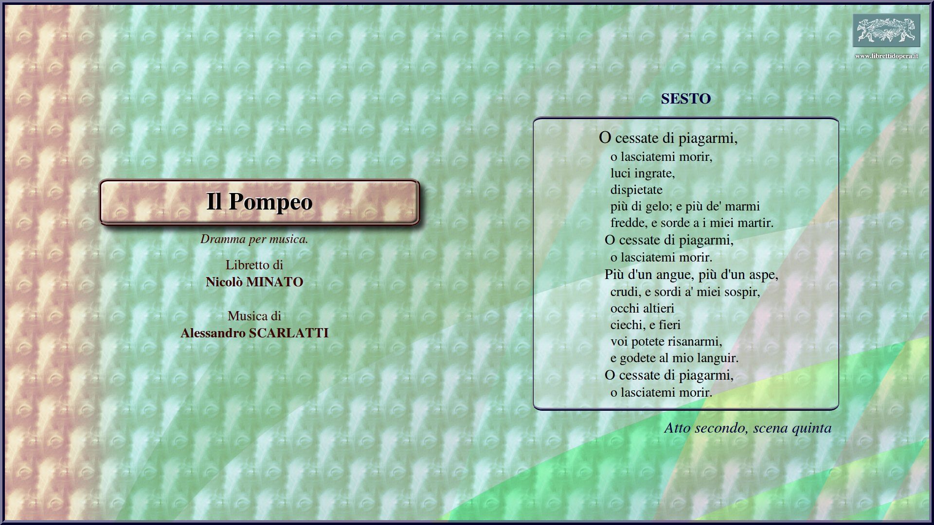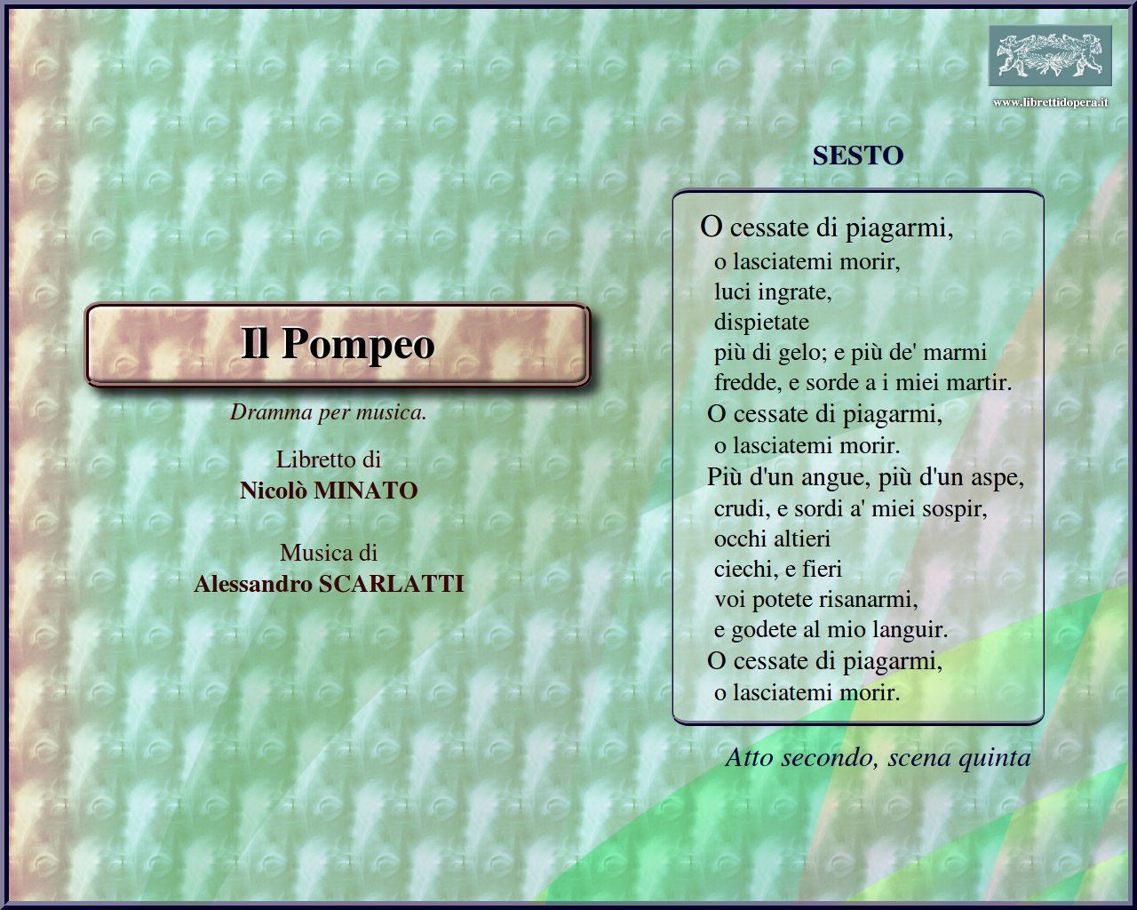 Toglietemi la vita ancor O cessate di piagarmi Lusingami speranza