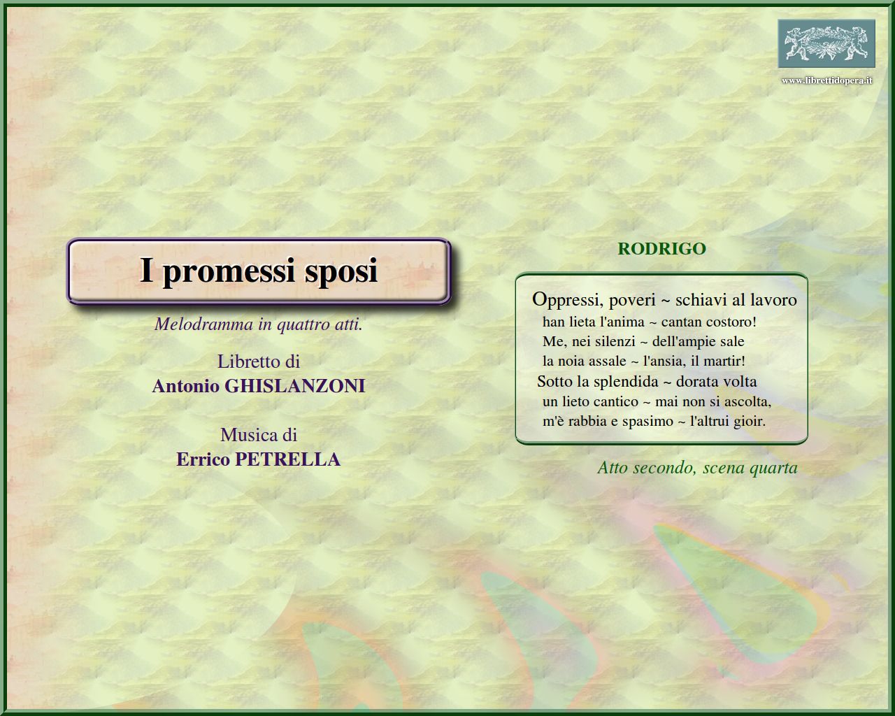Un turbamento insolito Oppressi, poveri, schiavi al lavoro Sotto il modesto tetto Non faccia strepito