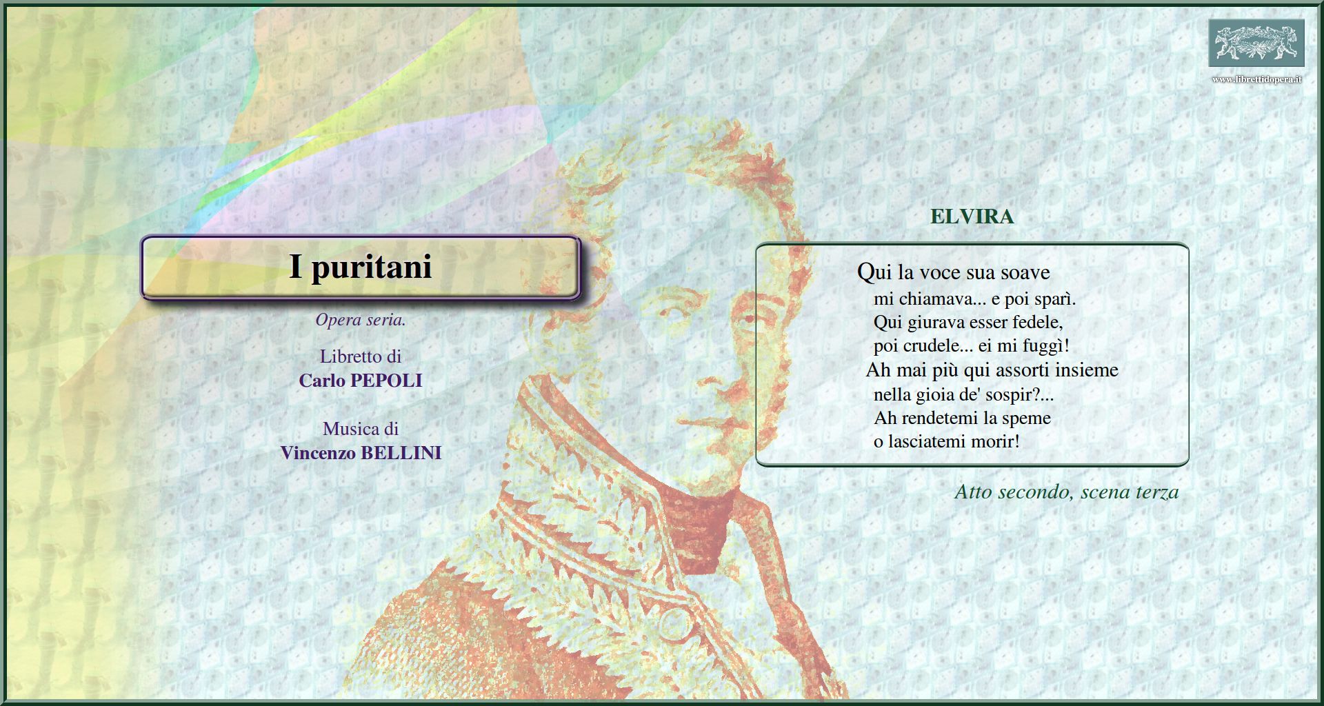 Ah per sempre io ti perdei A te, o cara, amor talora Son vergin vezzosa, in veste di sposa? Cinta di rose e col bel crin disciolto Qui la voce sua soave A una fonte afflitto e solo