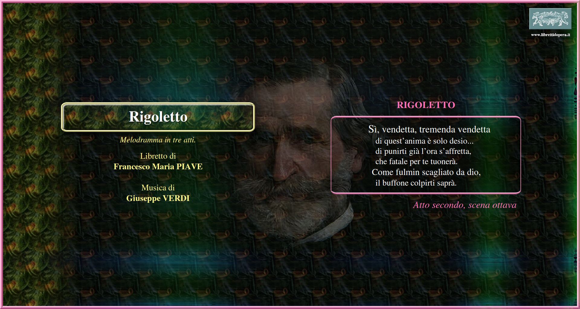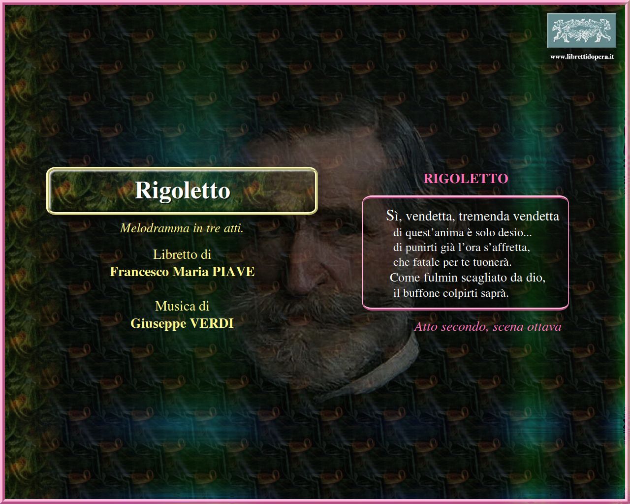 Questa o quella per me pari sono Pari siamo!... io la lingua, egli ha il pugnale Caro nome che il mio cor Cortigiani, vil razza dannata Tutte le feste al tempio Sì, vendetta, tremenda vendetta La donna è mobile Bella figlia dell'amore