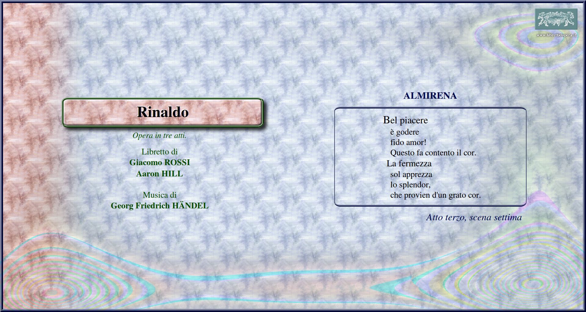 Cara sposa, amante cara Lascia ch'io pianga Bel piacere