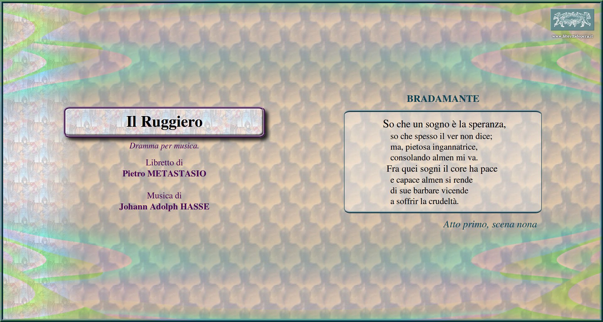 So che un sogno è la speranza Lo sdegno, ancor che fiero Di pietà, d'aita indegno